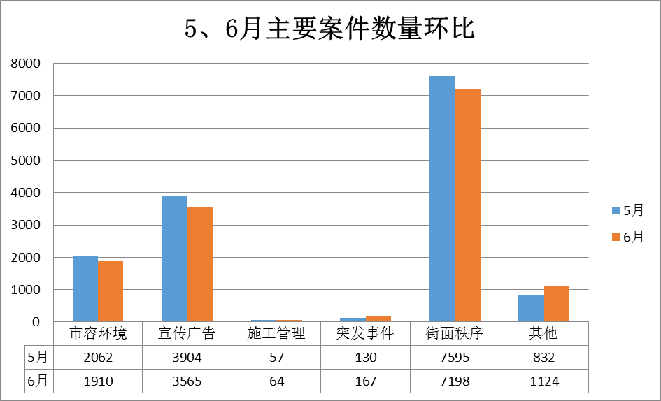 案件类别 | 6月(宗) | 5月(宗) | 增/减(宗) | 结案数(宗) | 结案率(%) | 案件主要类型 |