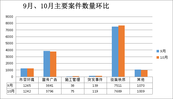 案件类别 | 10月(宗) | 9月(宗) | 增/减(宗) | 结案数(宗) | 结案率(%) | 案件主要类型 |
