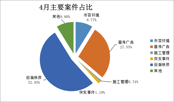 案件类别 | 4月(宗) | 3月(宗) | 增/减(宗) | 结案数(宗) | 结案率(%) | 案件主要类型 |