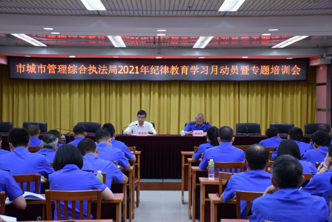 9月8日上午,市城市管理综合执法局召开2021年纪律教育学习月动员暨专题培训会,深入学习习近平总书记“七一”重要讲话和在十九届中央纪委五次全会上的重要讲话精神,部署纪律教育学习工作。党组书记、局长赖惠镇出席会议并讲话,党组成员、副局长谭国忠主持会议。机关全体人员和直属单位中层以上干部共90余人参加会议。