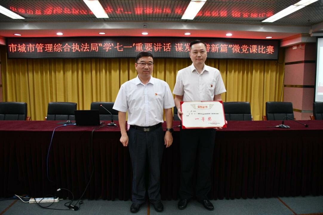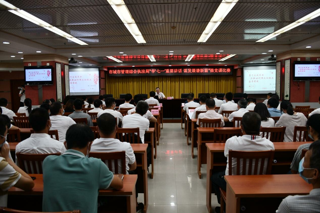 为深入学习贯彻习近平总书记“七一”重要讲话精神,9月23日上午,市城市管理综合执法局举办了“学‘七一’重要讲话 谋发展谱新篇”微党课比赛。市委党史学习教育第七巡回指导组成员林福祥莅临指导,全局系统党员干部共80余人参加比赛活动。