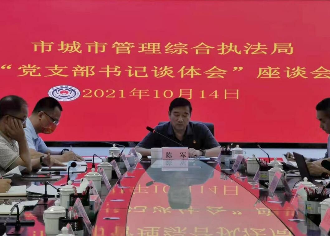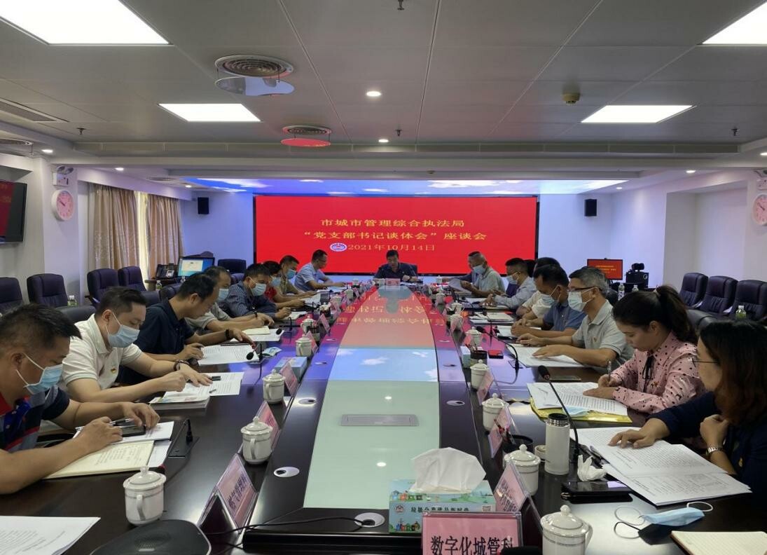 为深入学习贯彻习近平总书记在庆祝中国共产党成立100周年大会上的重要讲话精神,10月14日上午,市城市管理综合执法局召开了“党支部书记谈体会”座谈会。市委党史学习教育第七巡回指导组副组长李建新、组员谭文耀莅临指导;局领导,党支部书记,机关科室、直属单位负责人共22人参加会议。
