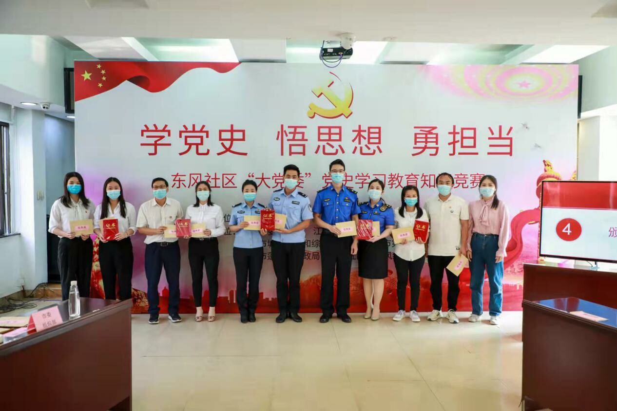 二是开展一次有奖知识竞赛。10月20日,我局机关党委与东风社区“大党委”成员单位共同组织开展“学党史 悟思想 勇担当”党史学习教育知识竞赛。本次竞赛共8支队伍,16位参赛者参加,围绕党史学习教育应知应会知识,经过必答题、抢答题、风险题等三个环节的激烈角逐,我局参赛队伍在此次竞赛中荣获“优秀奖”。通过知识竞赛的形式,激发党员群众的学习热情,营造“以赛促学”的浓厚氛围,确保党史学习教育入脑入心。