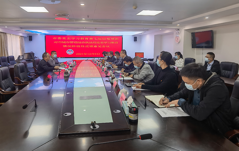 12月6日上午,市委党史学习教育第七巡回指导组对市城市管理综合执法局党史学习教育情况阶段性反馈意见会议召开。市委第七巡回指导组组长陈怀、副组长李建新,市城市管理综合执法局领导班子成员及党史学习教育工作专班相关负责人参加会议。