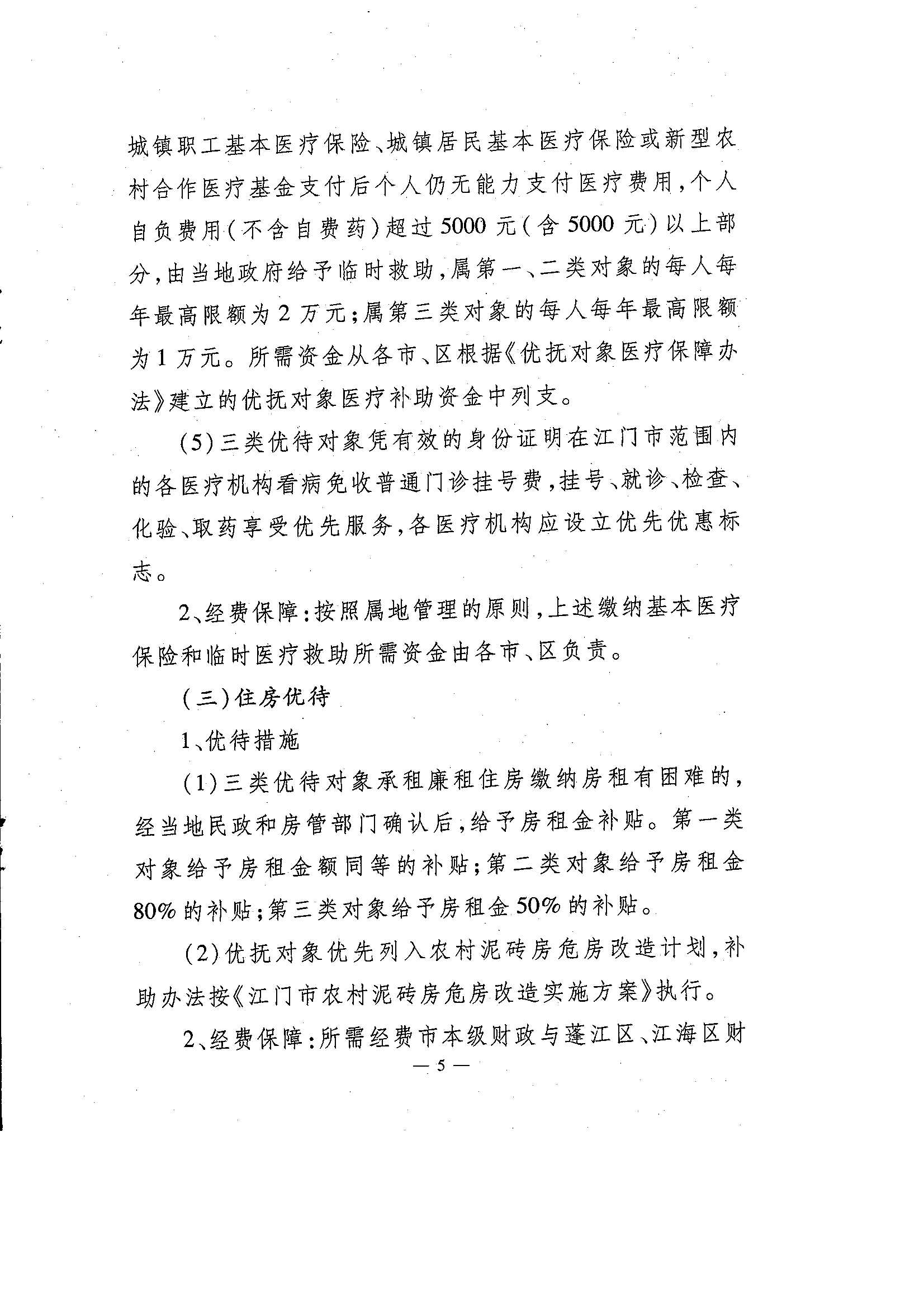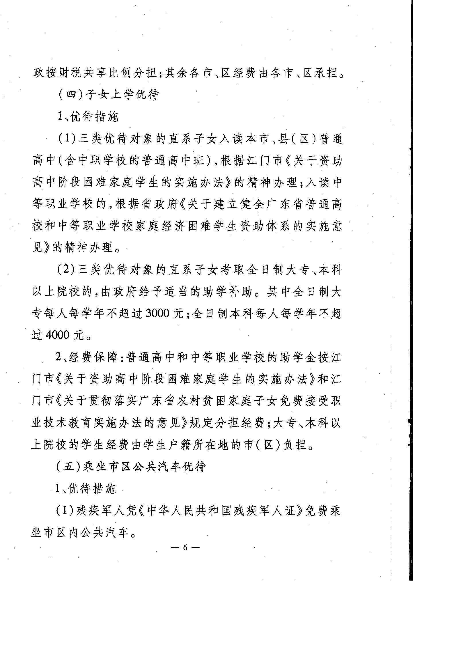 关于印发《江门市优待困难转复退军人等优抚对象的意见》的通知