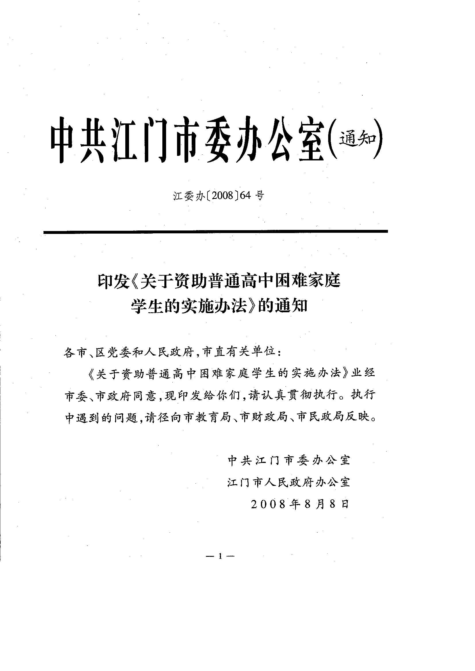 印发《关于资助普通高中困难家庭学生的实施办法》的通知