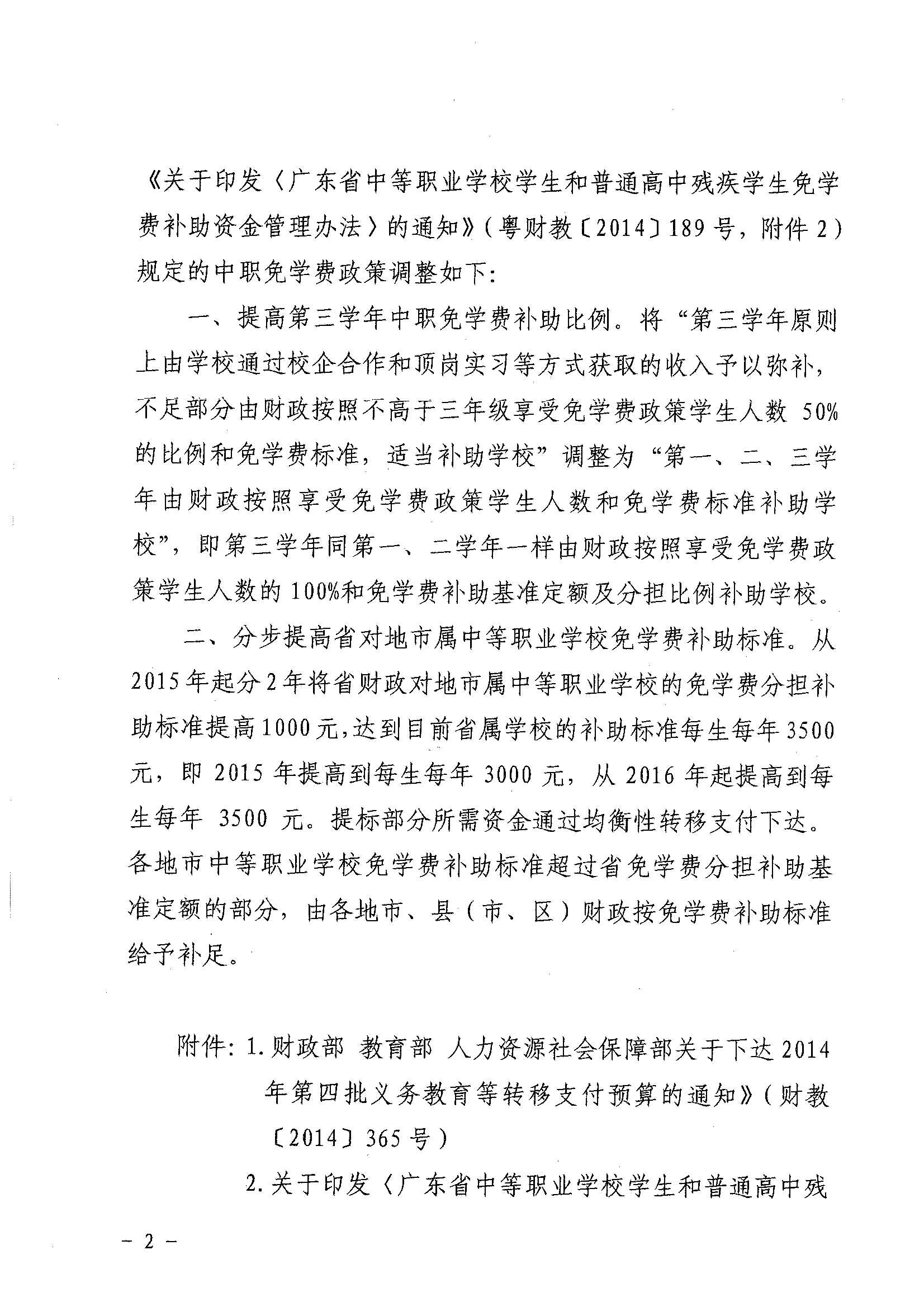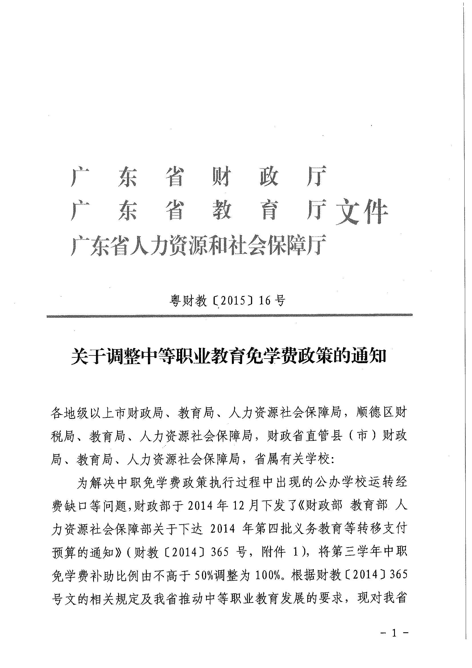 关于调整中等职业教育免学费政策的通知