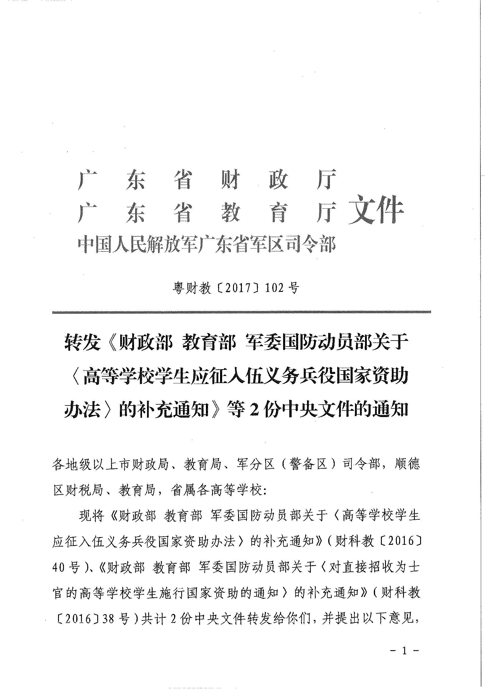 来源:广东省财政厅、教育厅、中国人民解放军广东省军分区司令部