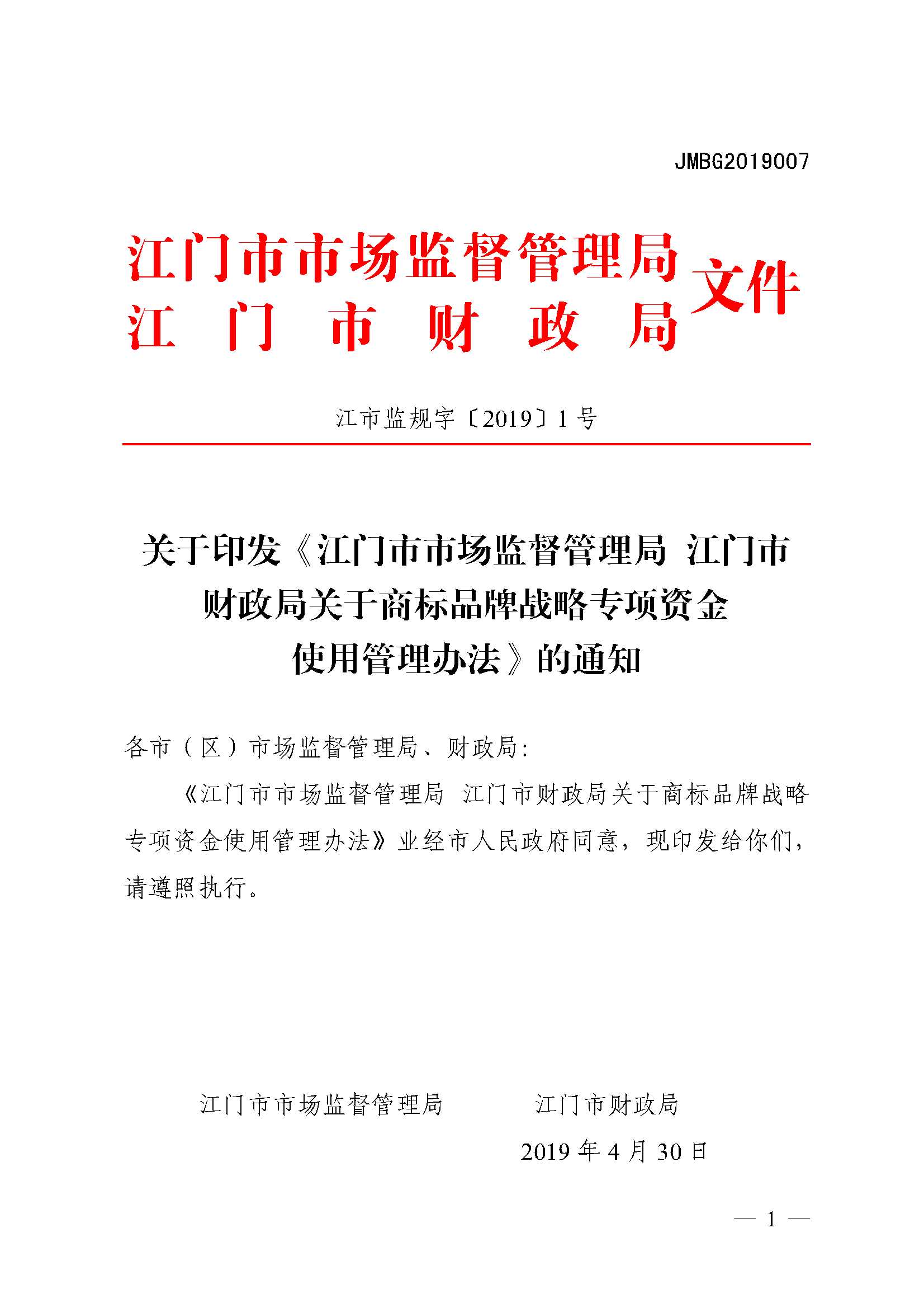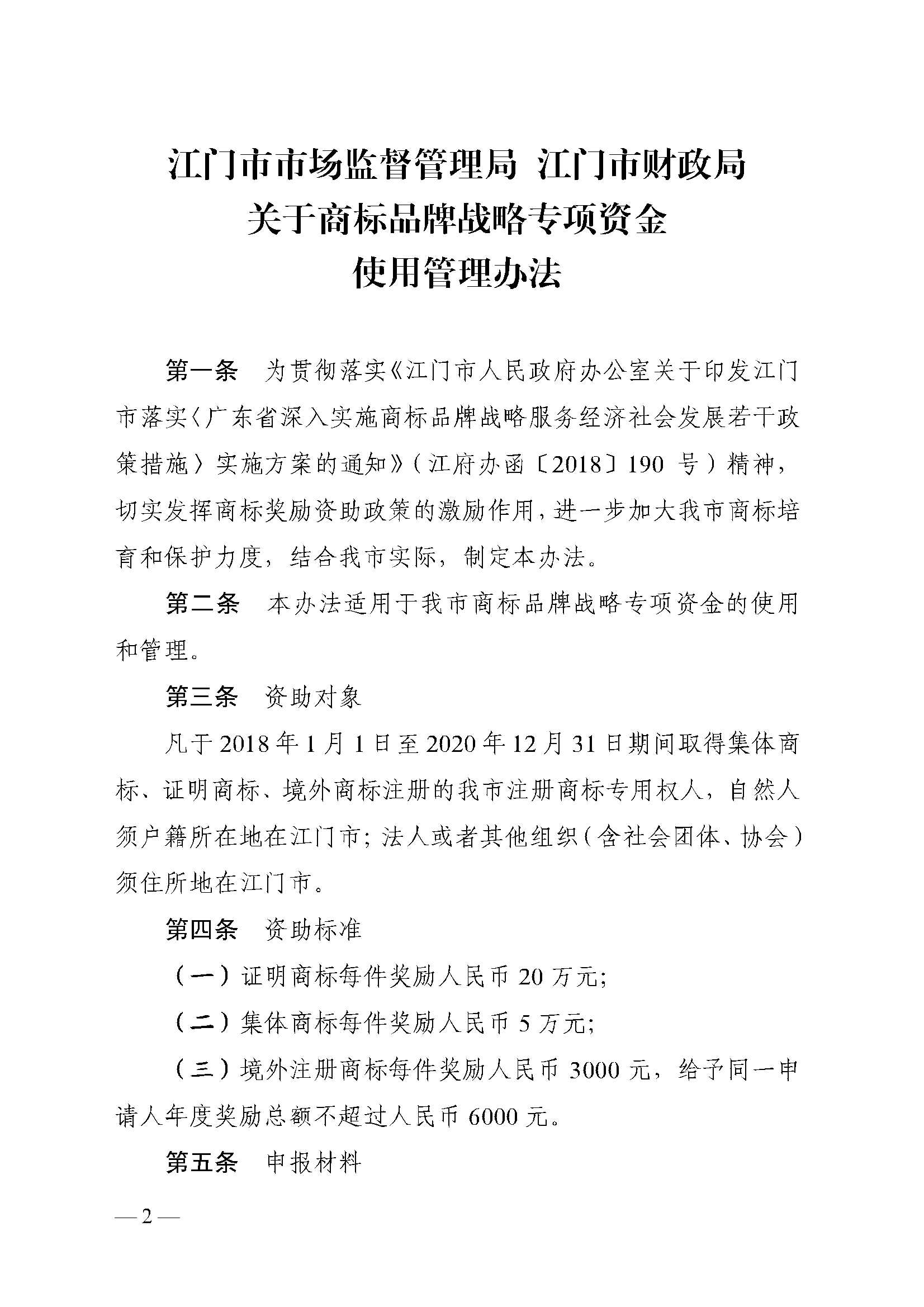 关于印发《美高梅博彩 江门市财政局关于商标品牌战略专项资金使用管理办法》的通知