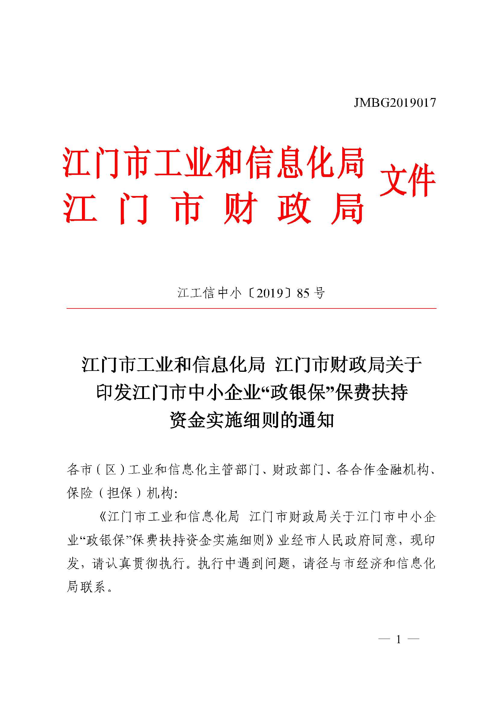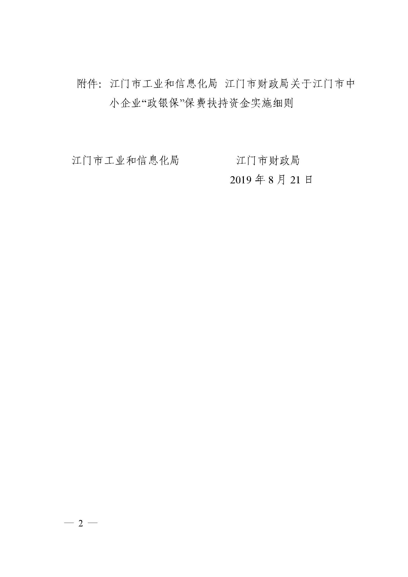 江门市工业和信息化局 江门市财政局关于印发江门市中小企业“政银保”保费扶持资金实施细则的通知【已失效】