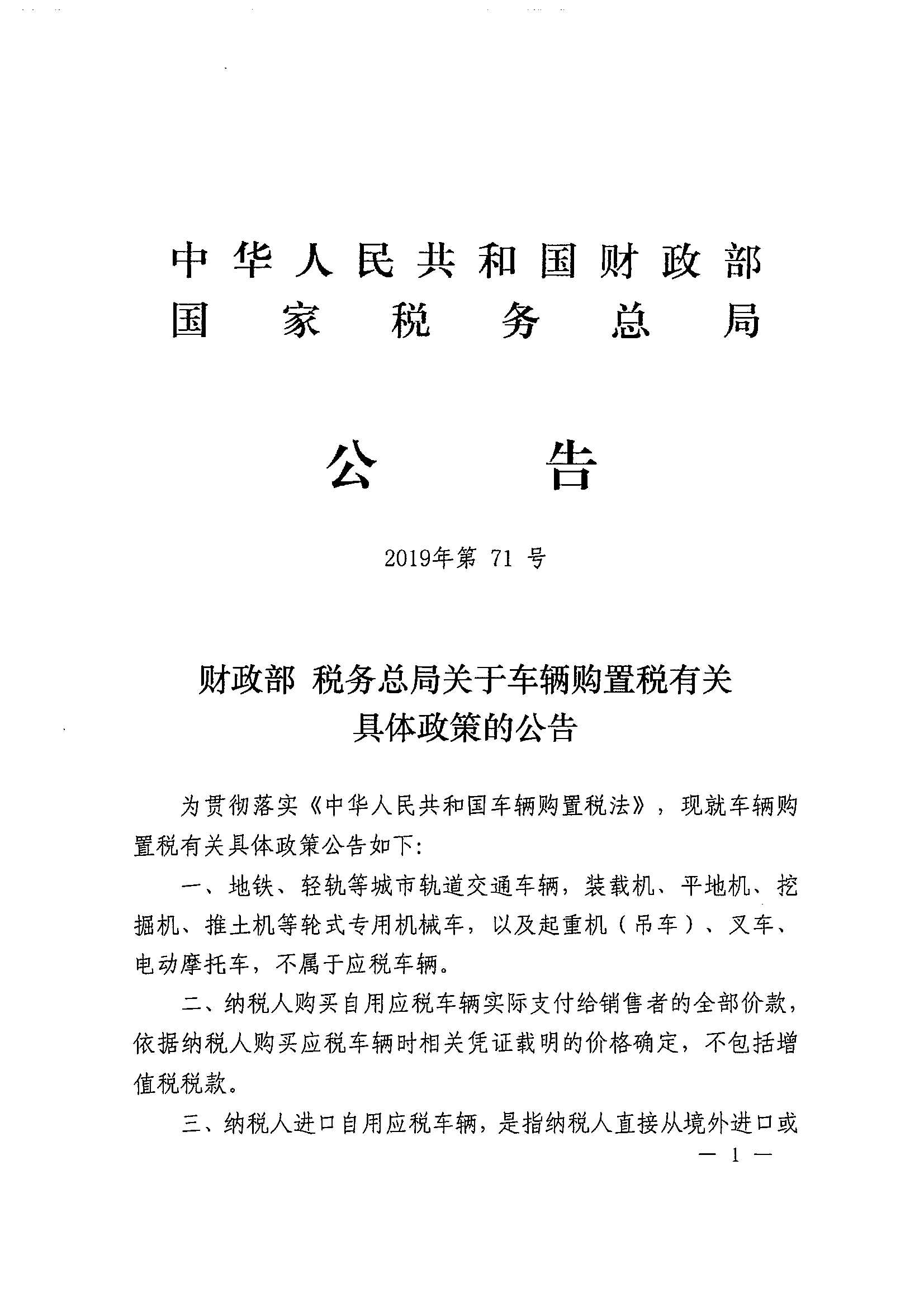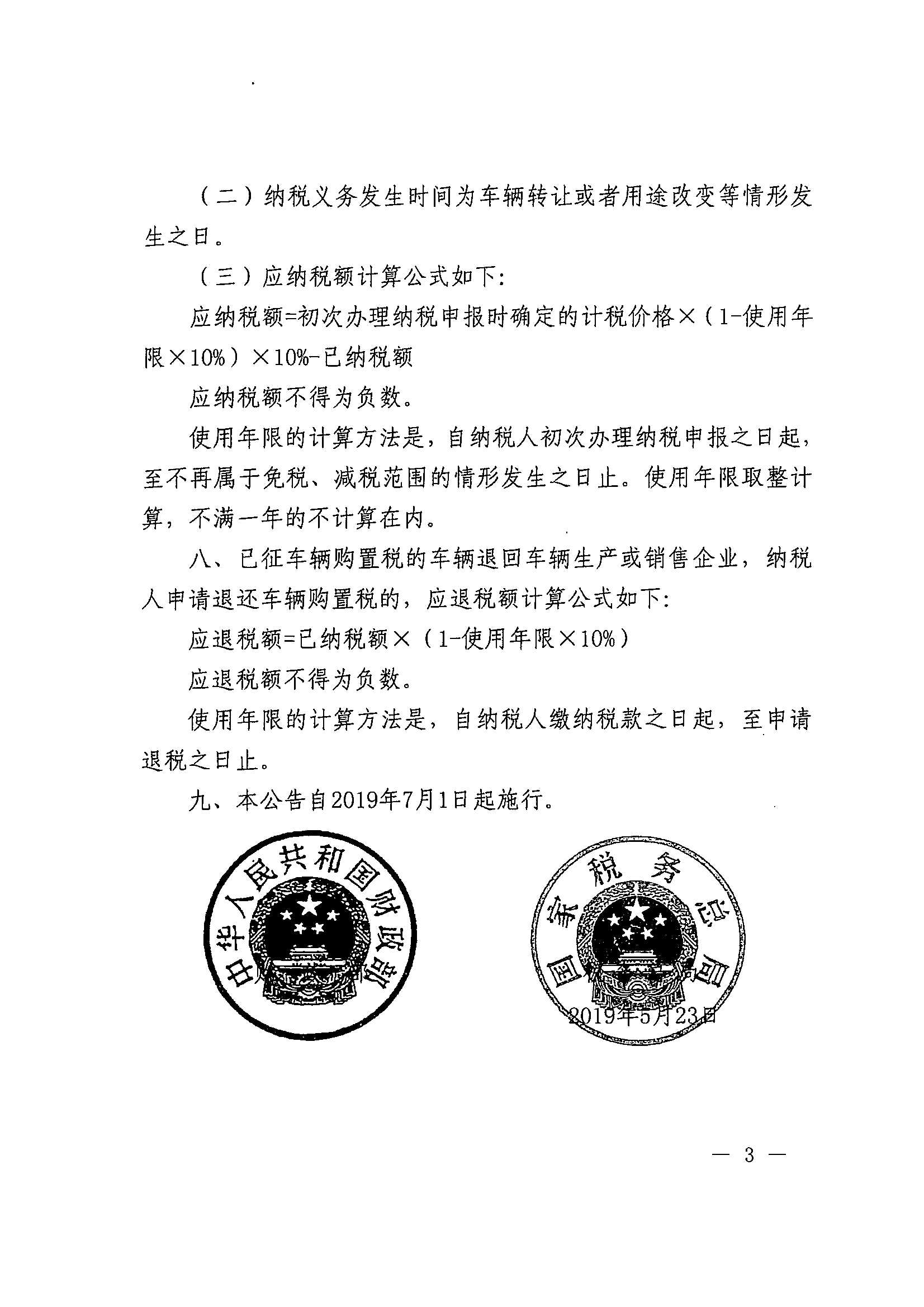 财政部 税务总局关于车辆购置税有关具体政策的公告