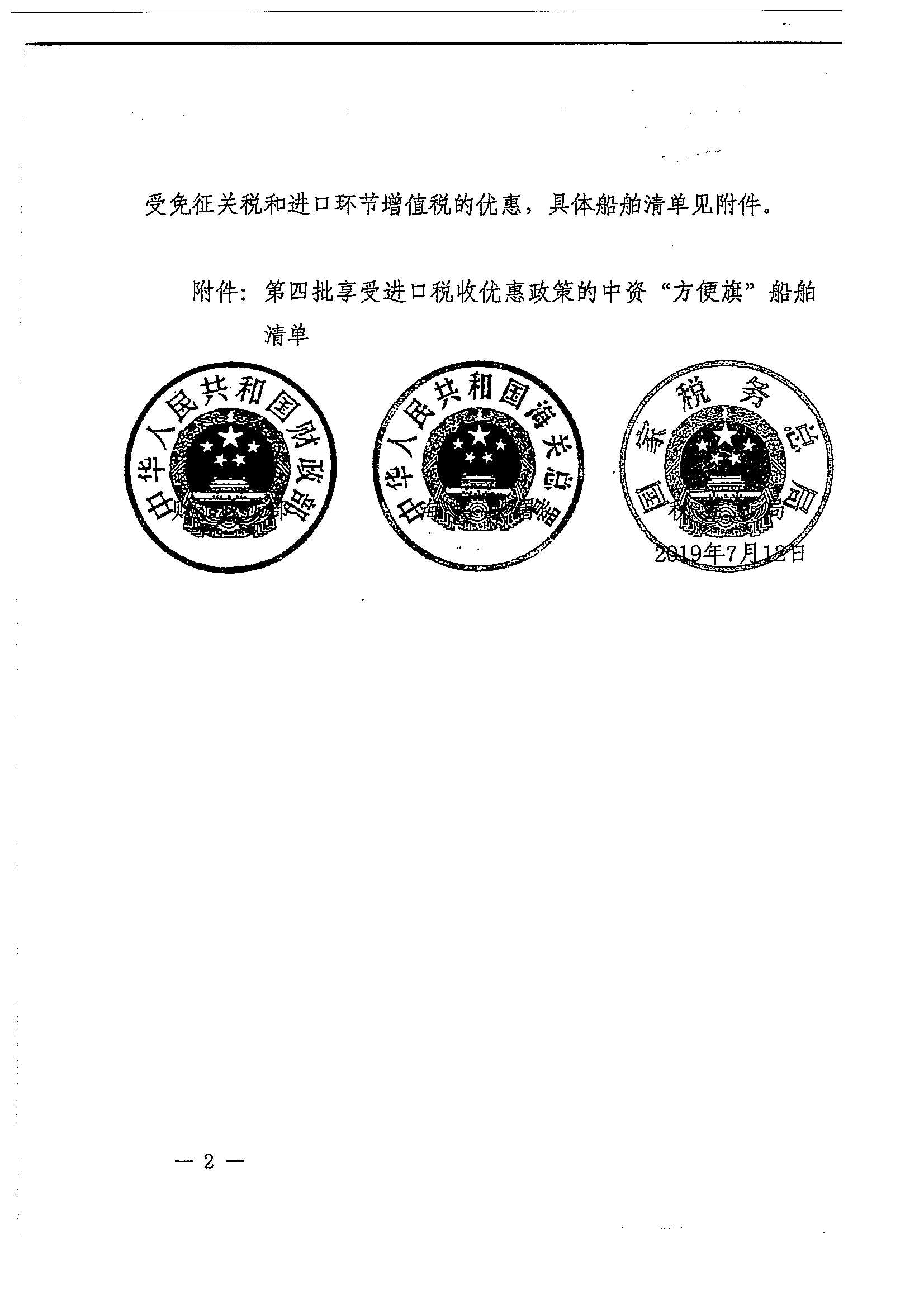 财政部 海关总署 税务总局关于第四批享受进口税收优惠政策的中资“方便旗”船舶清单的通知