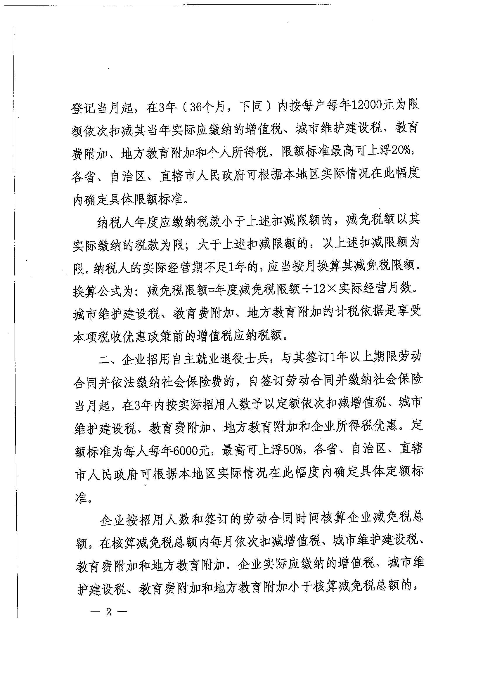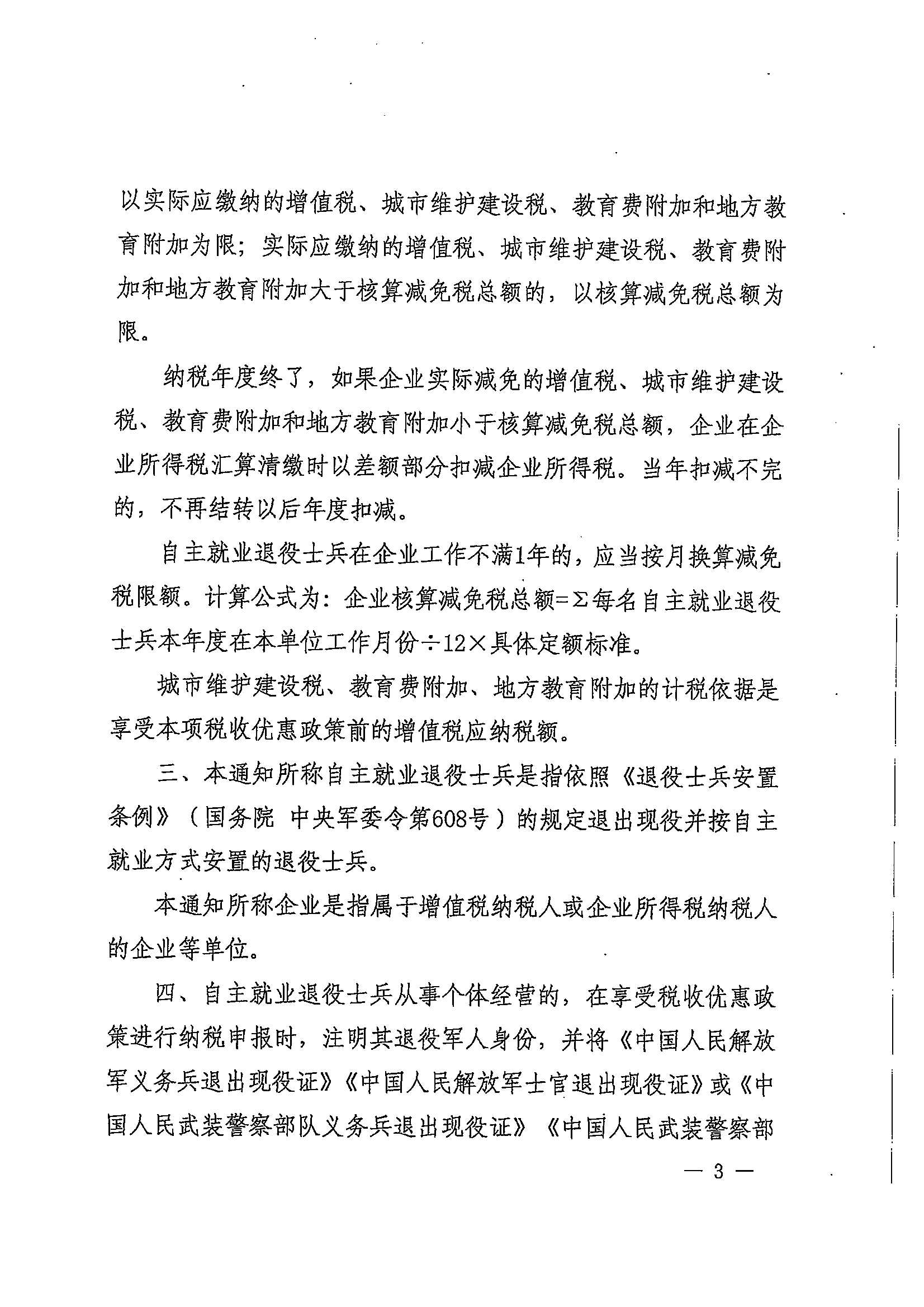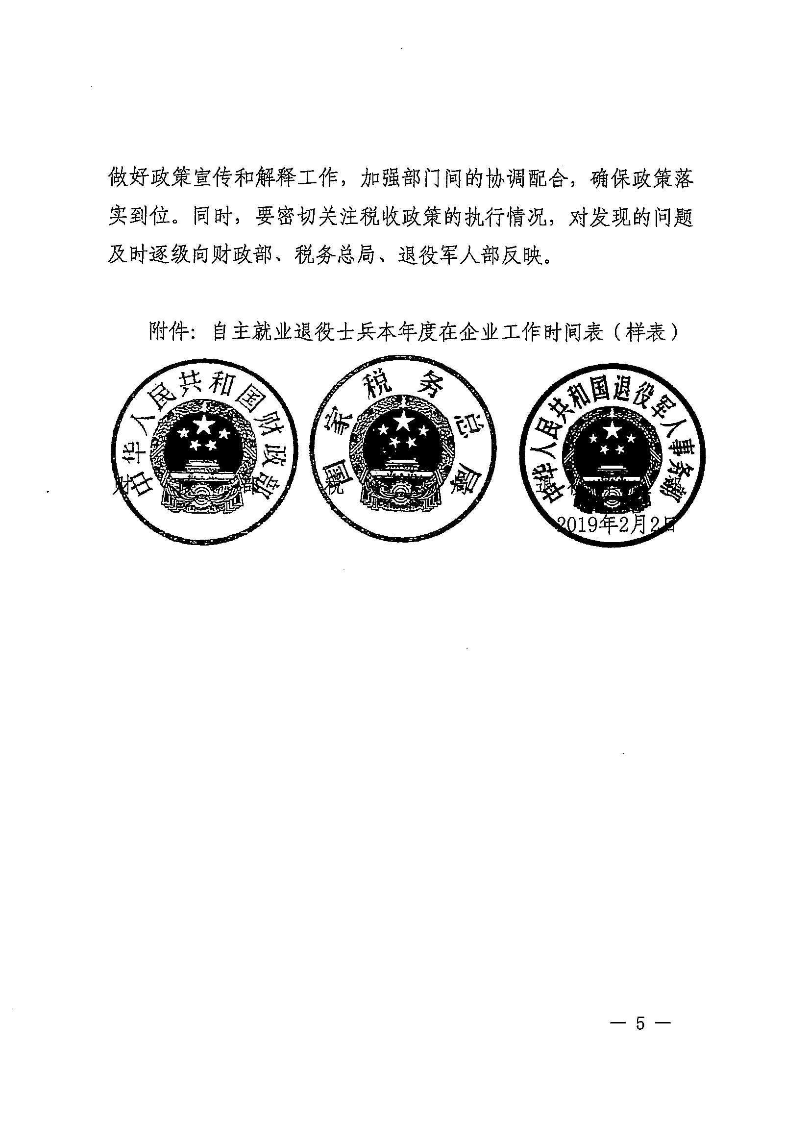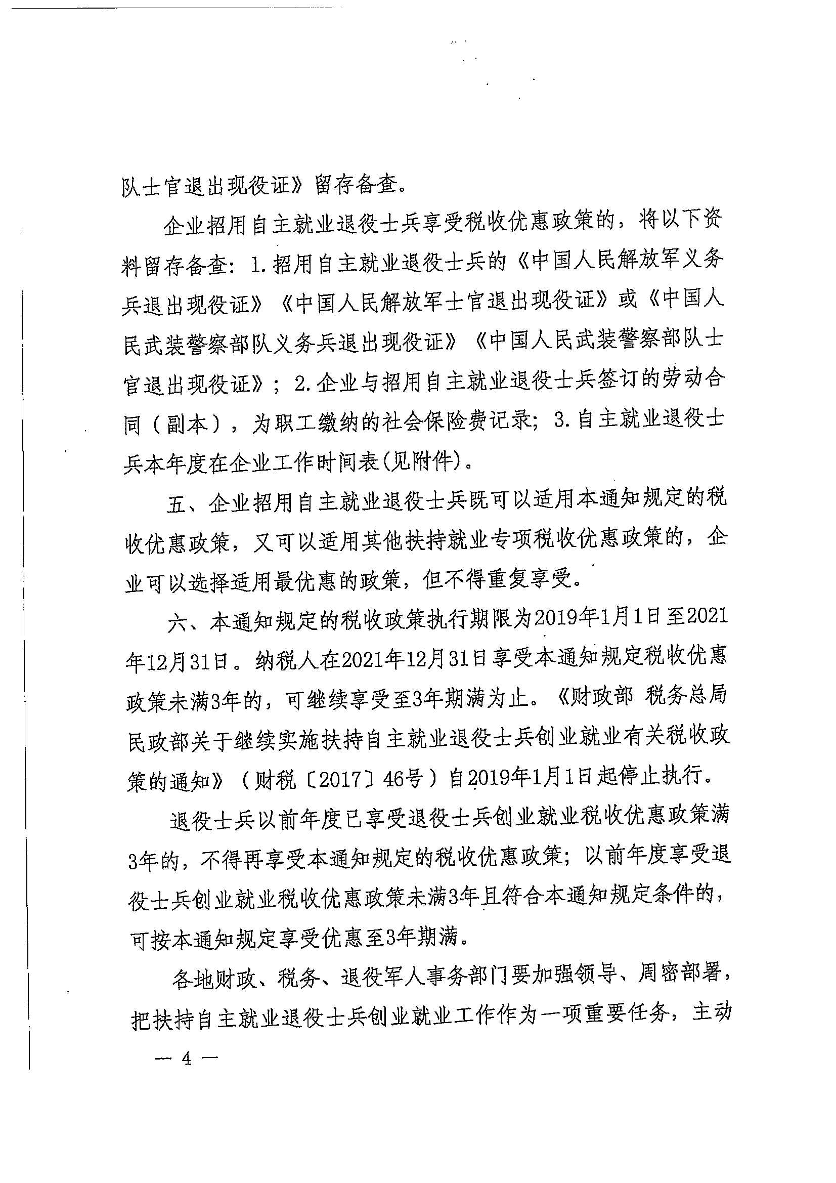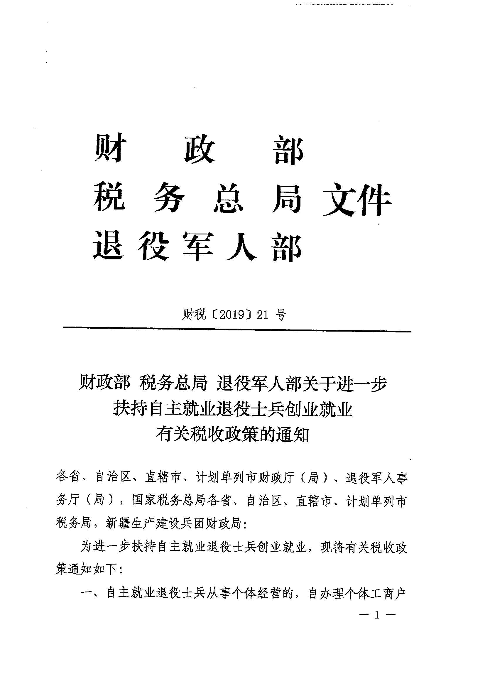 财政部 税务总局 退役军人部关于进一步扶持自主就业退役士兵创业就业有关税收政策的通知