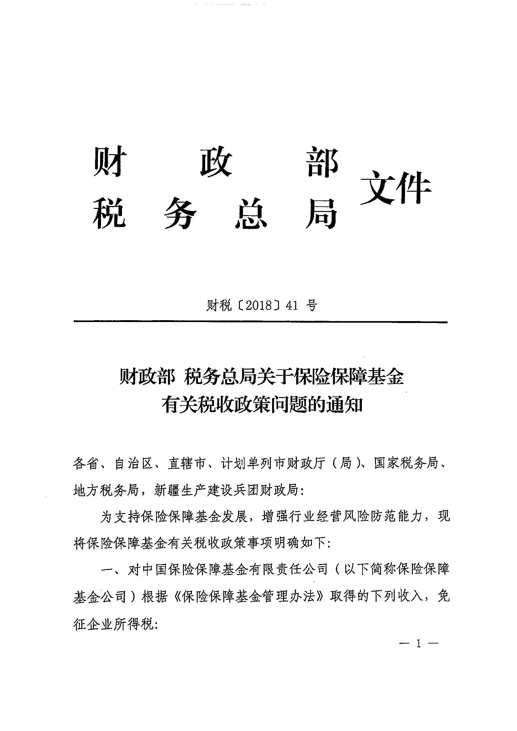 财政部 税务总局关于保险保障基金有关税收政策问题的通知