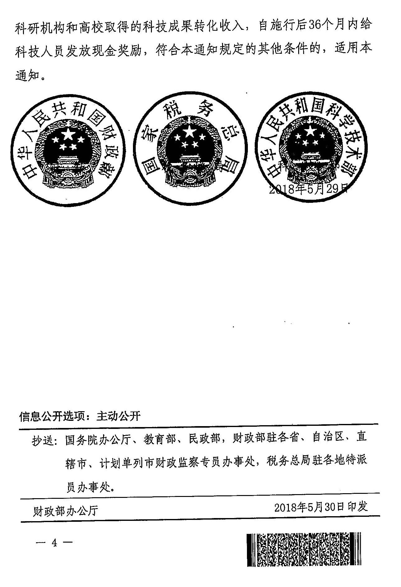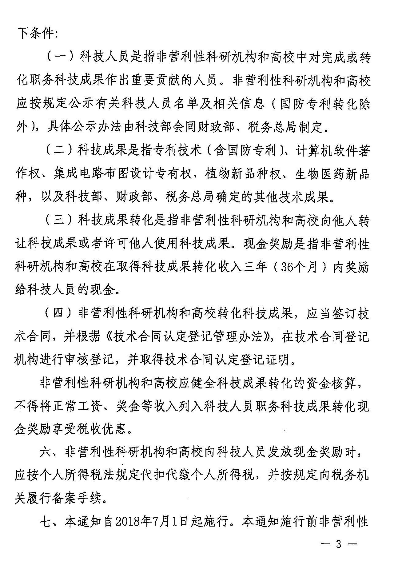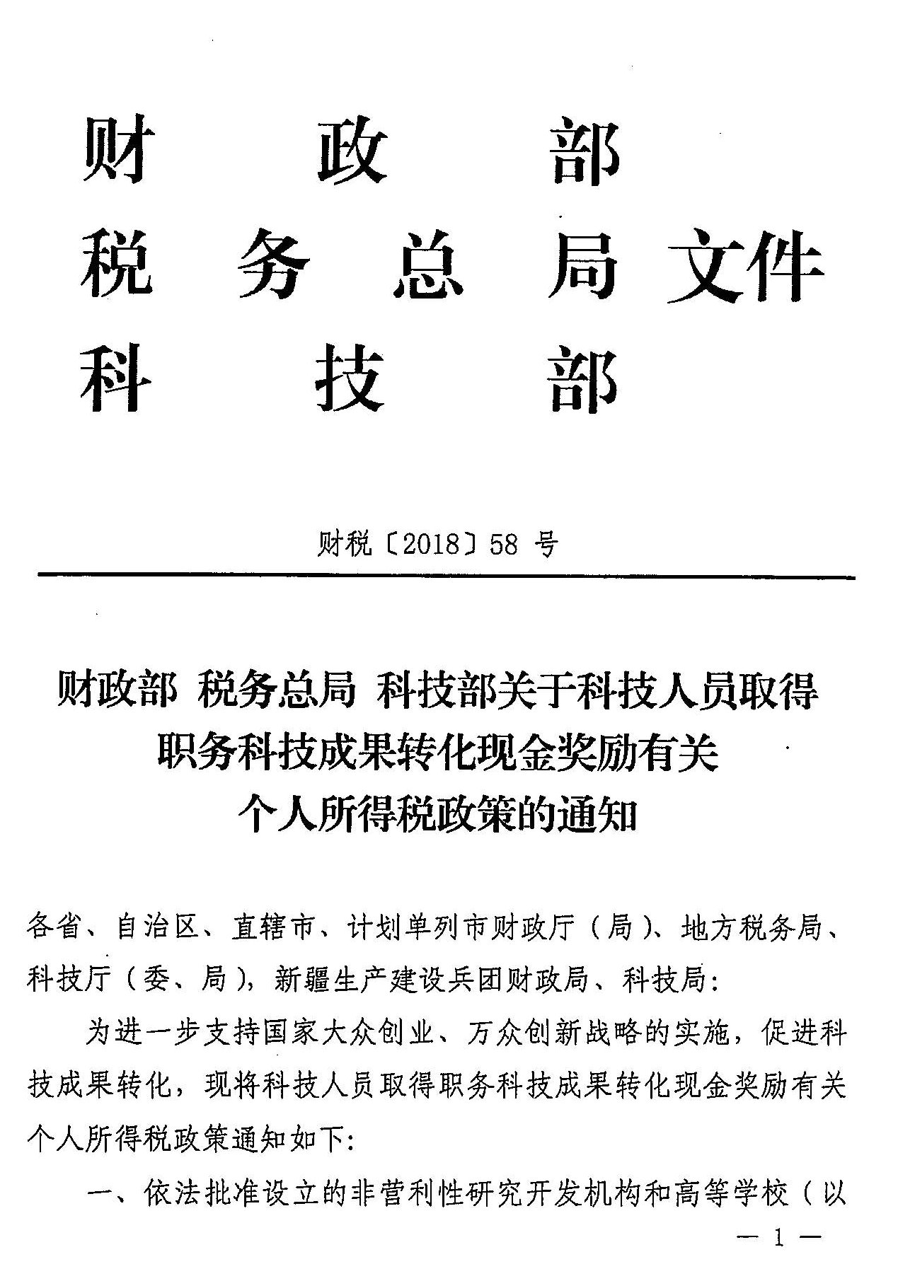 财政部 税务总局 科技部关于科技人员取得职务科技成果转化现金奖励有关个人所得税政策的通知