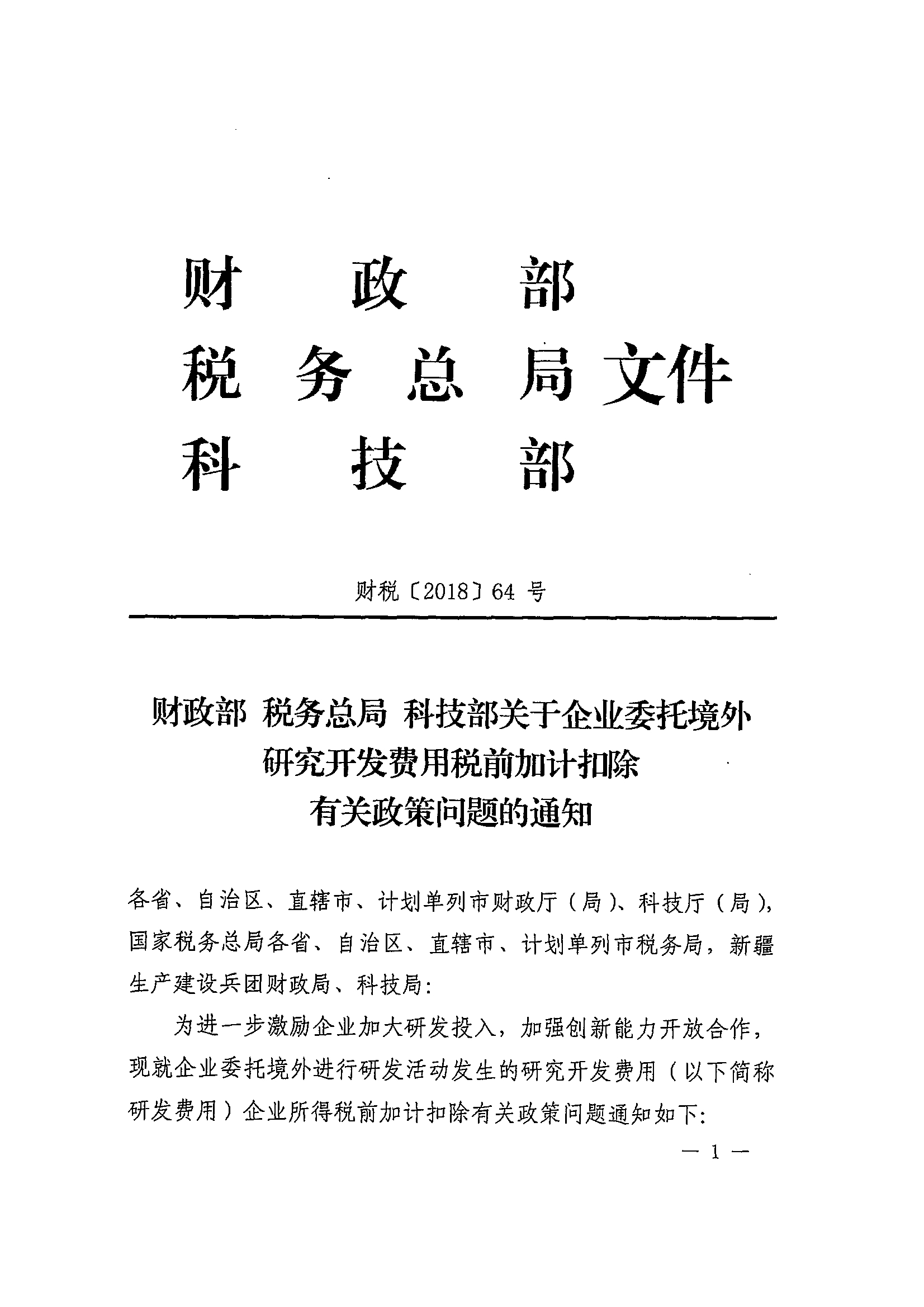 财政部 税务总局 科技部关于企业委托境外研究开发费用税前加计扣除有关政策问题的通知