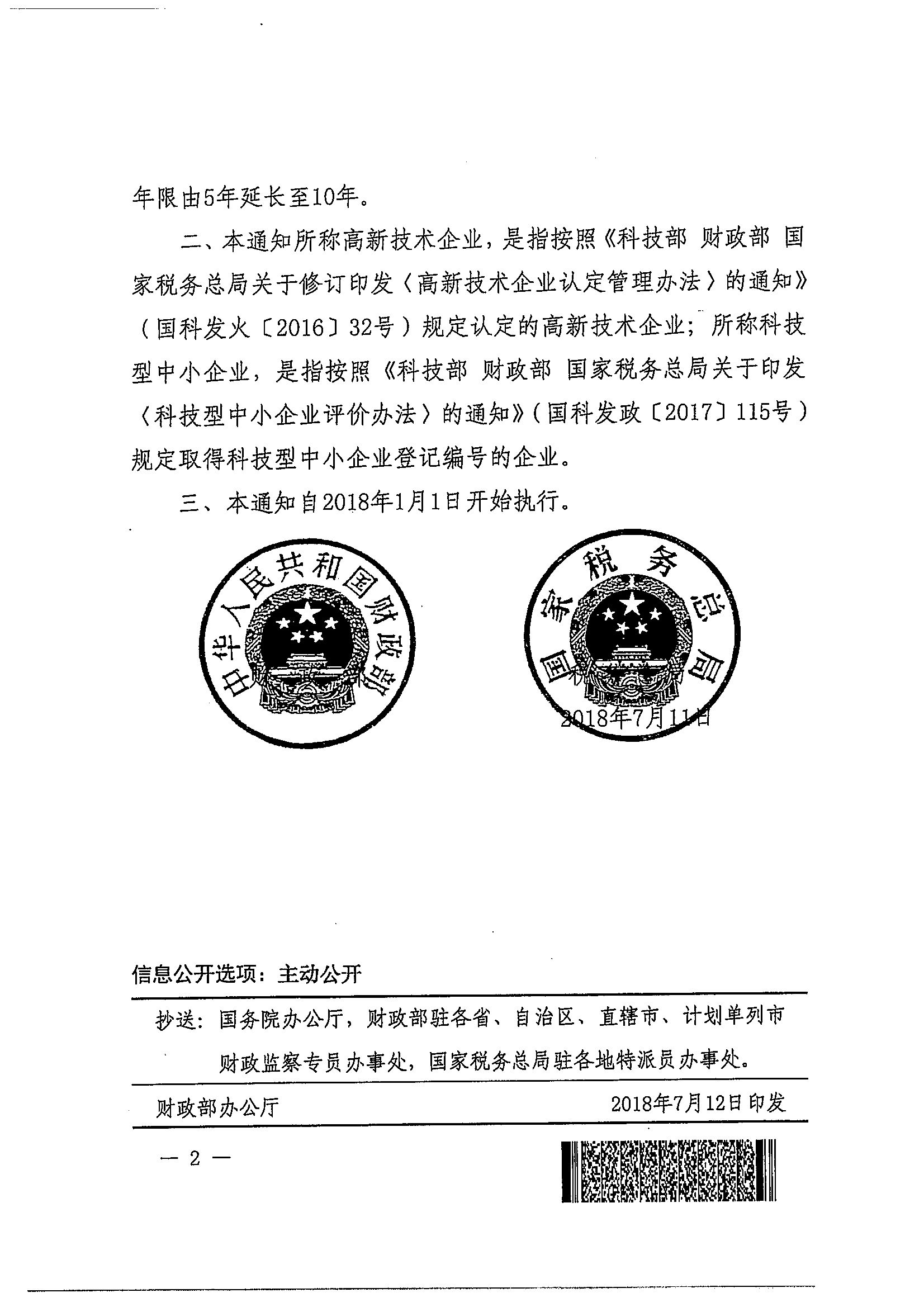 财政部 税务总局关于延长高新技术企业和科技型中小企业亏损结转年限的通知