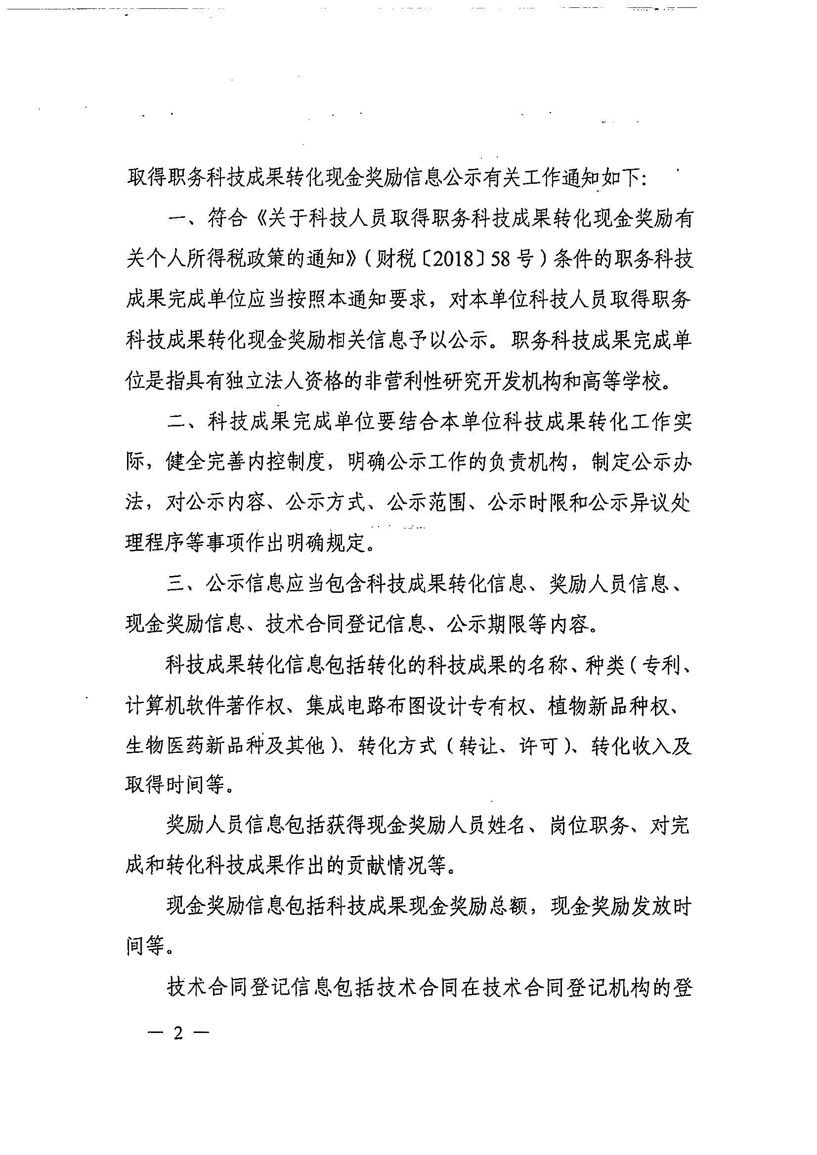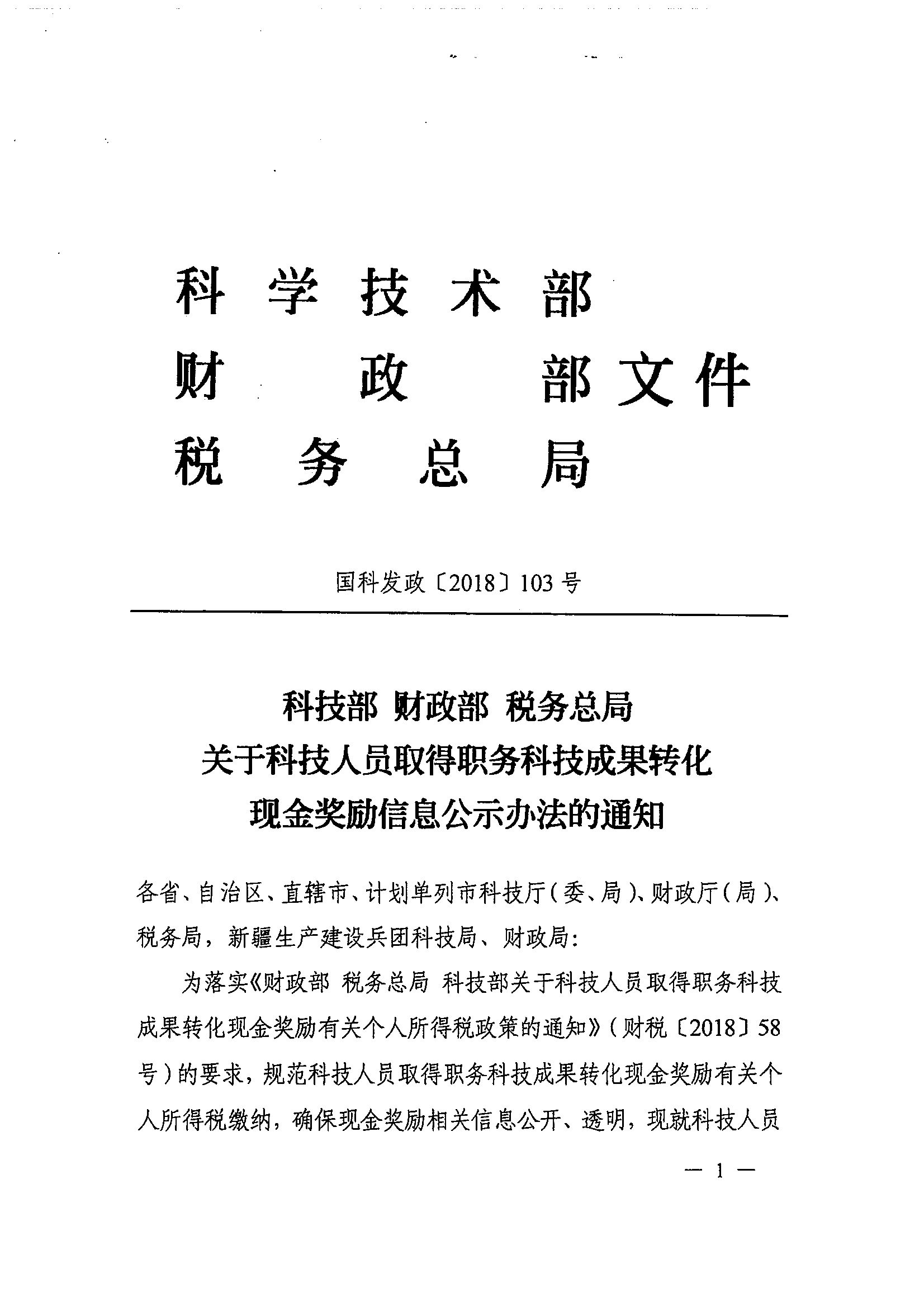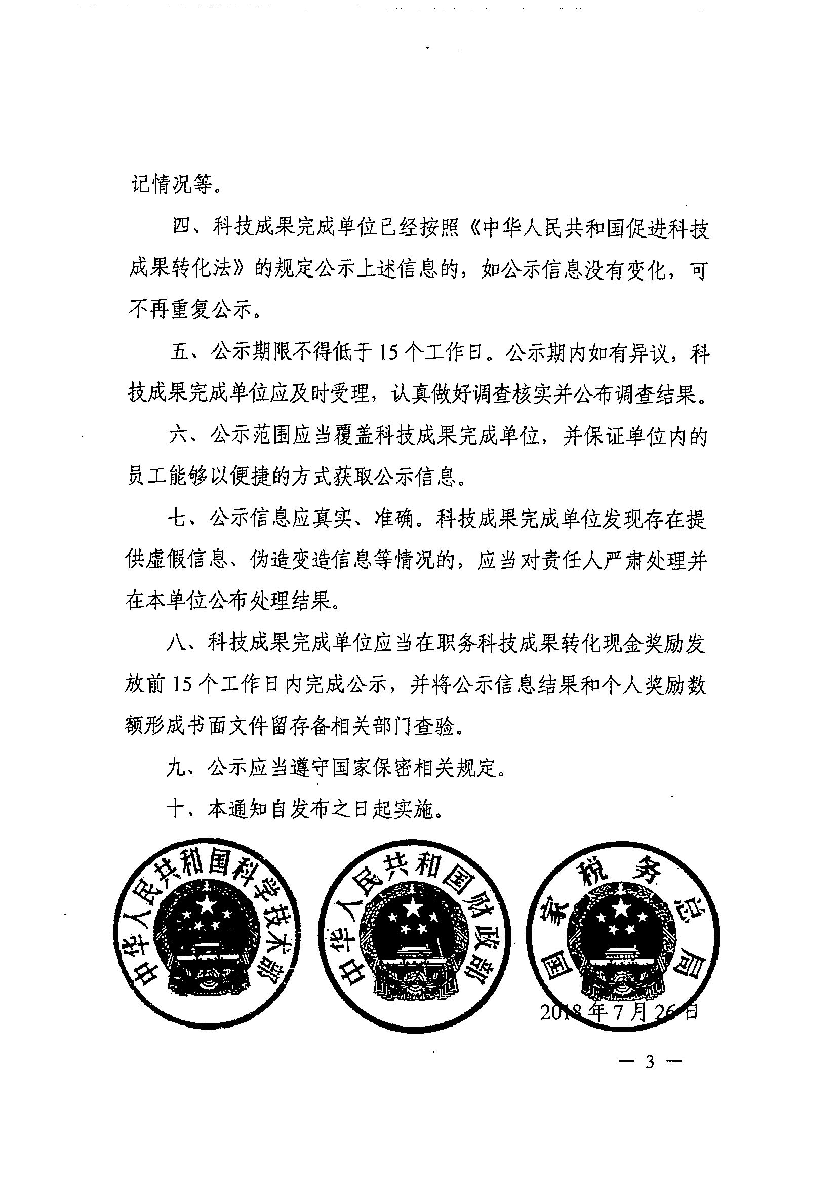 科技部 财政部 税务总局关于科技人员取得职务科技成果转化现金奖励信息公示办法的通知