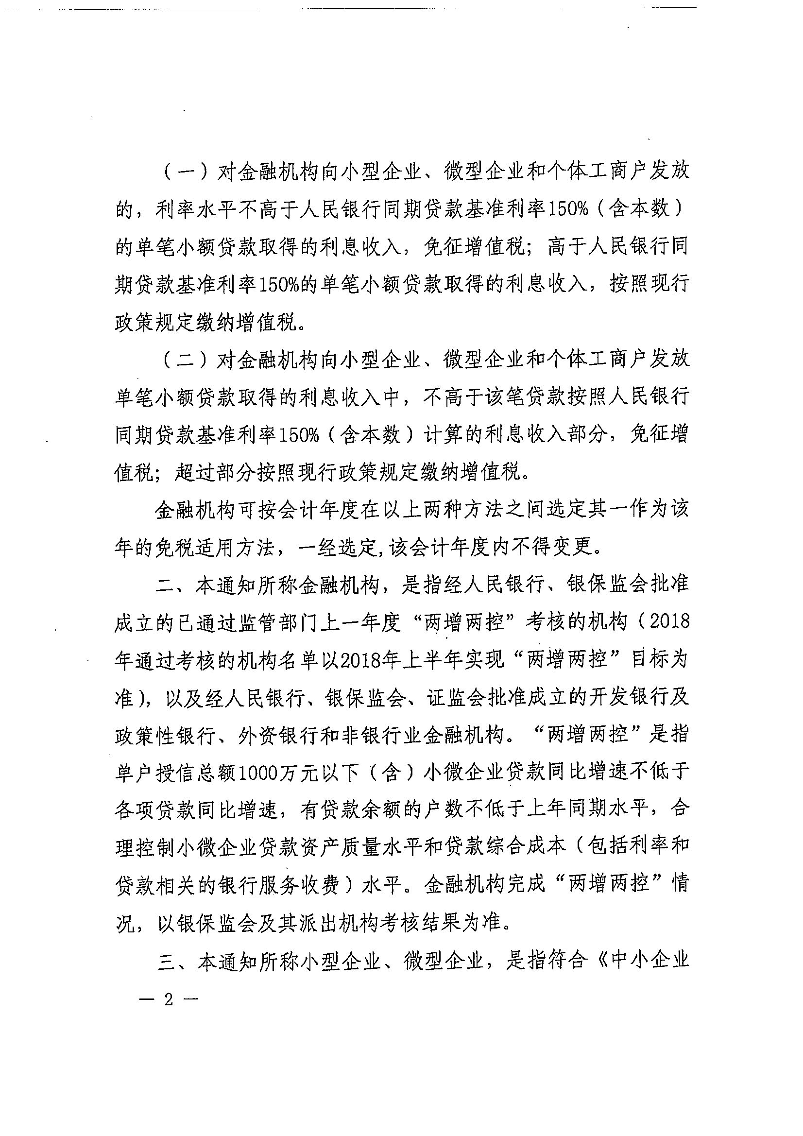 财政部 税务总局关于金融机构小微企业贷款利息收入免征增值税政策的通知