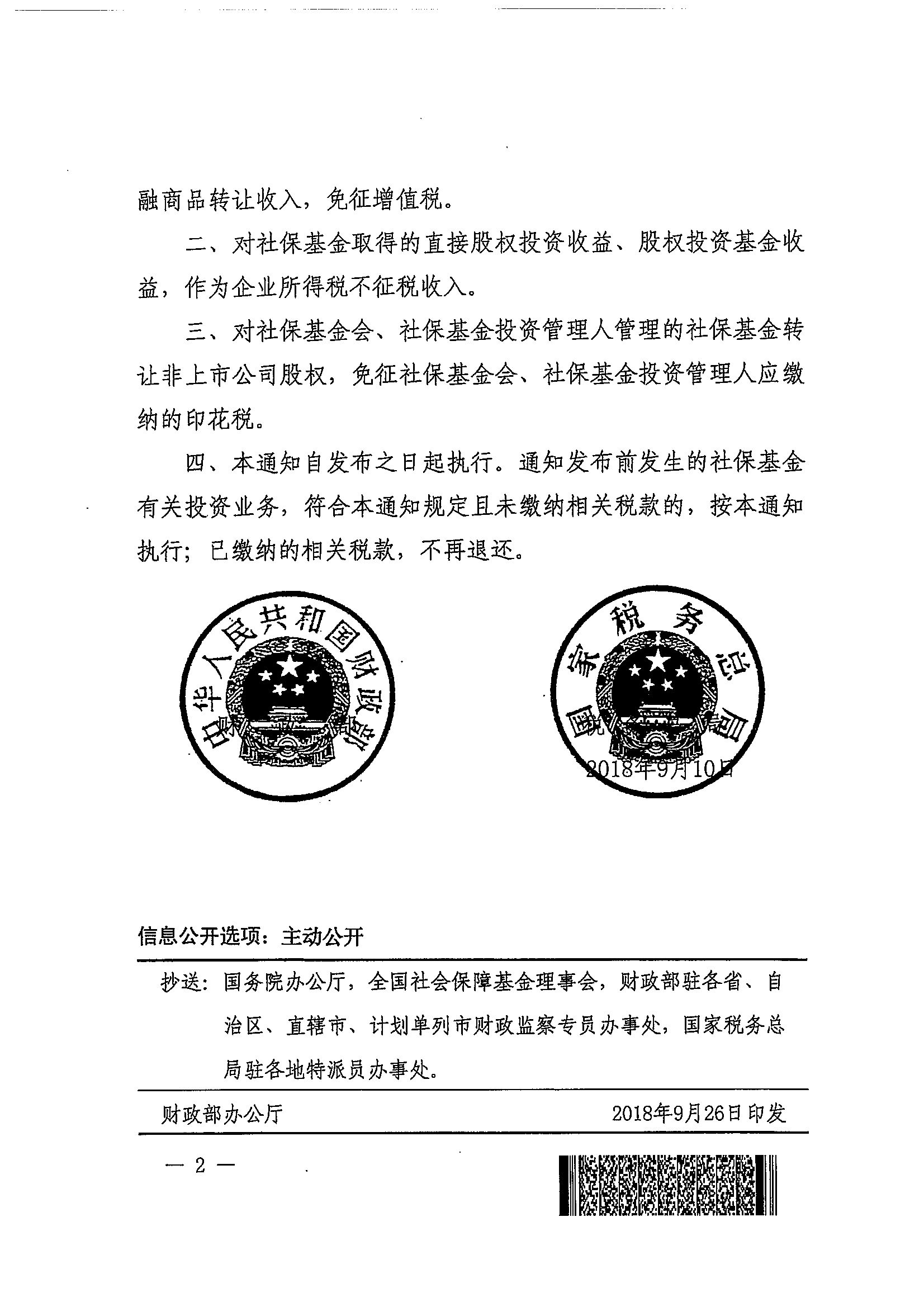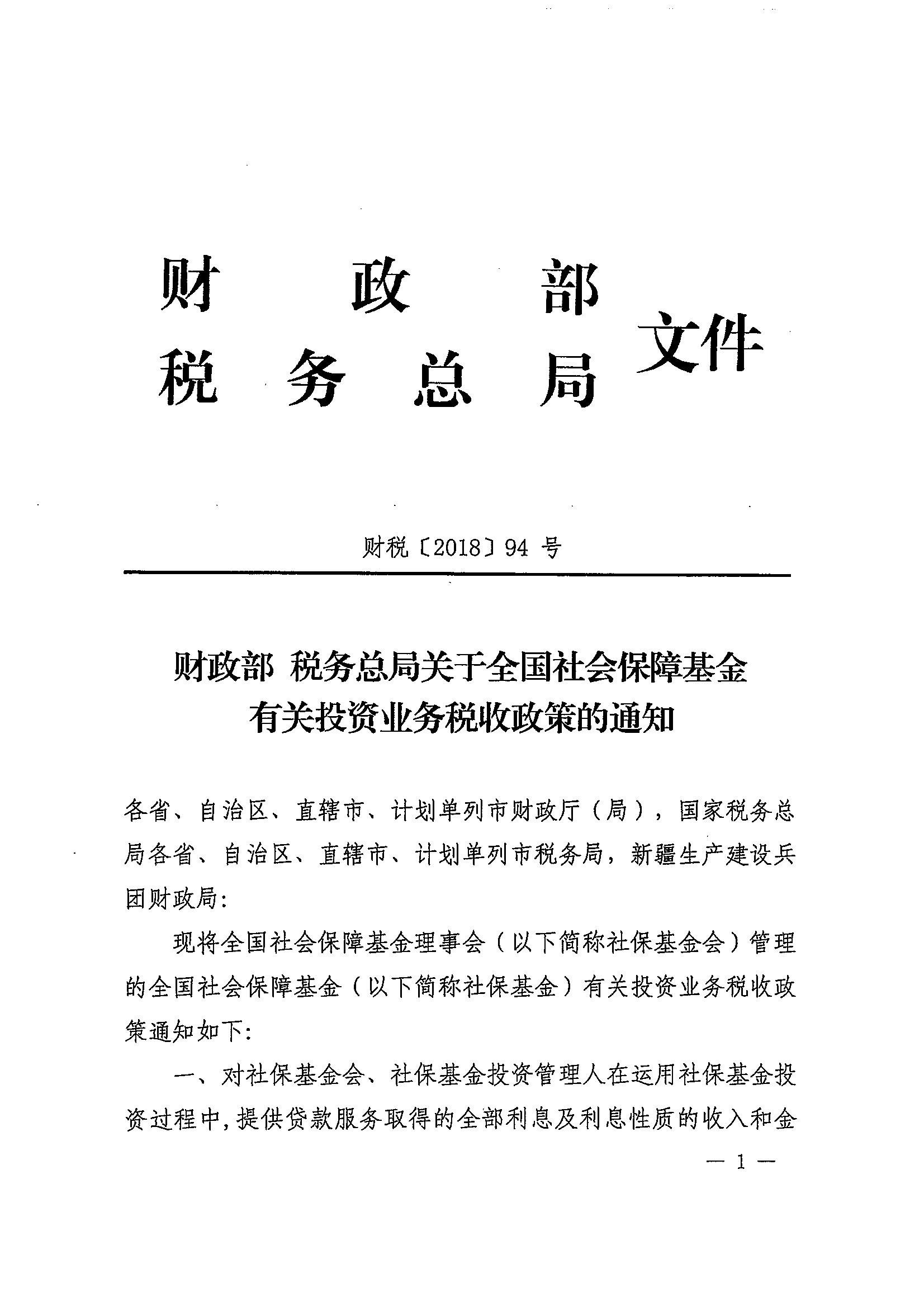 财政部 税务总局关于全国社会保障基金有关投资业务税收政策的通知
