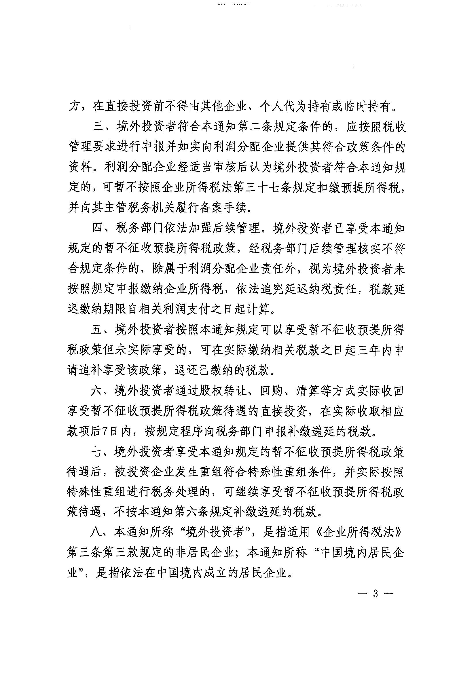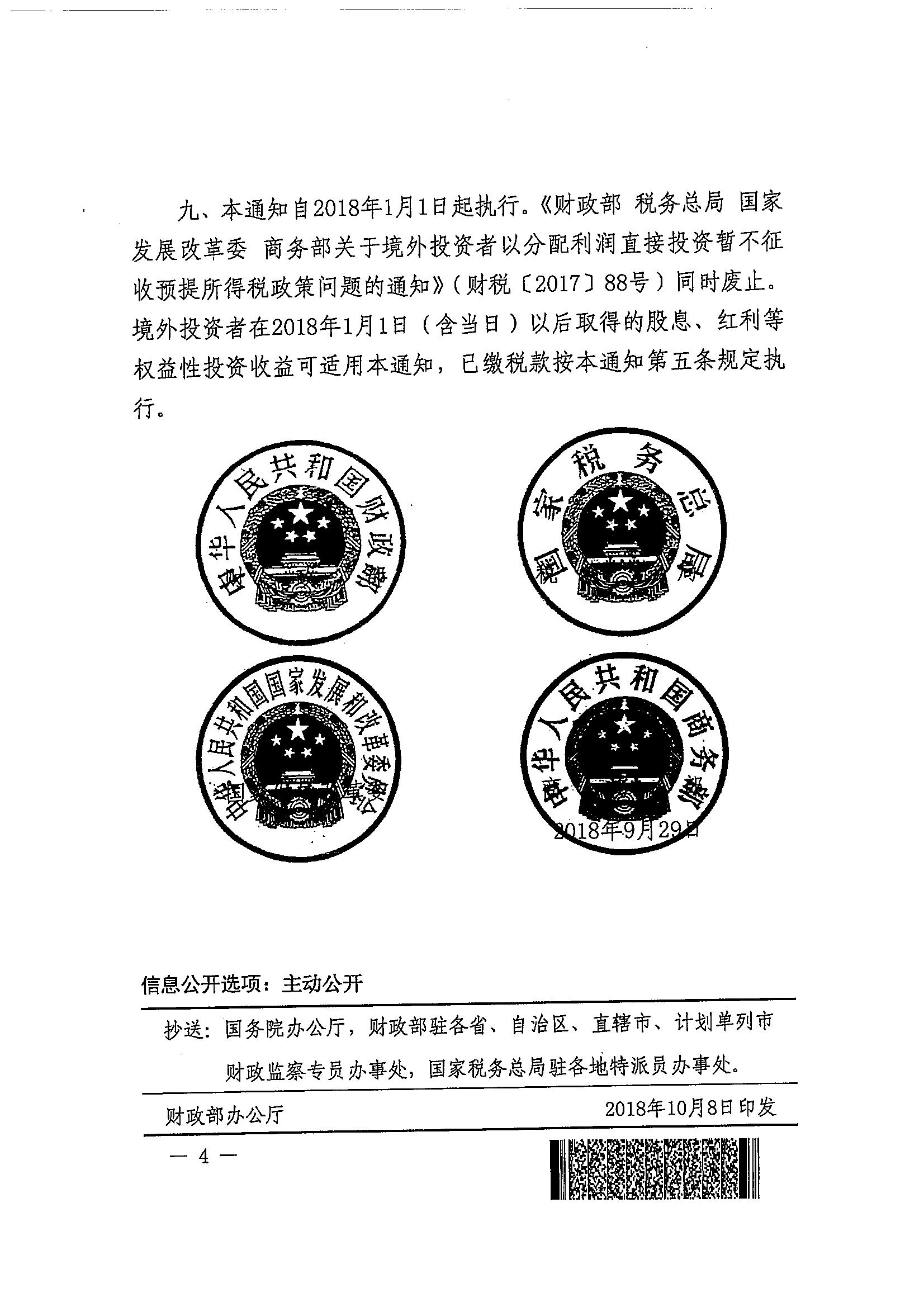 财政部 税务总局 国家发展改革委 商务部关于扩大境外投资者以分配利润直接投资暂不征收预提所得税政策适用范围的通知
