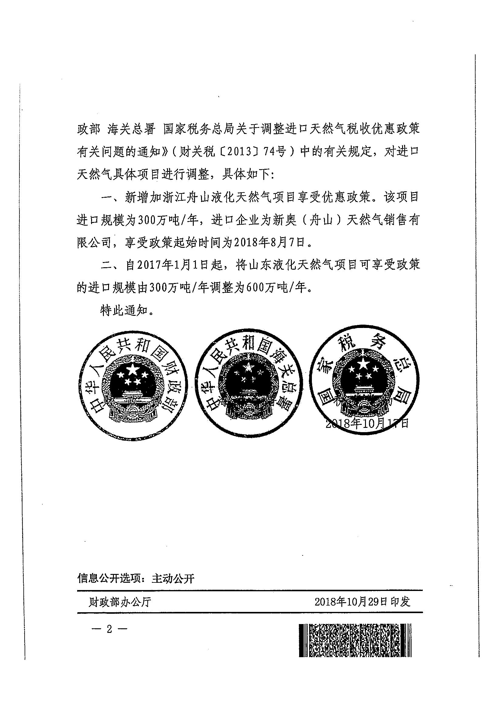 财政部 海关总署 税务总局关于调整享受税收优惠政策天然气进口项目的通知