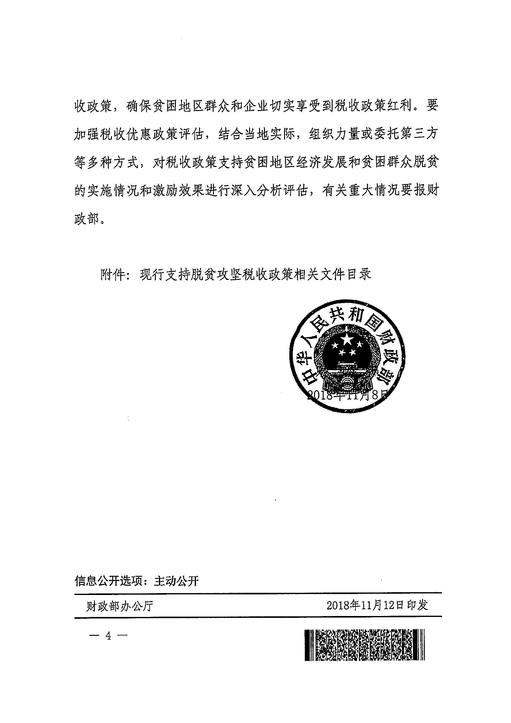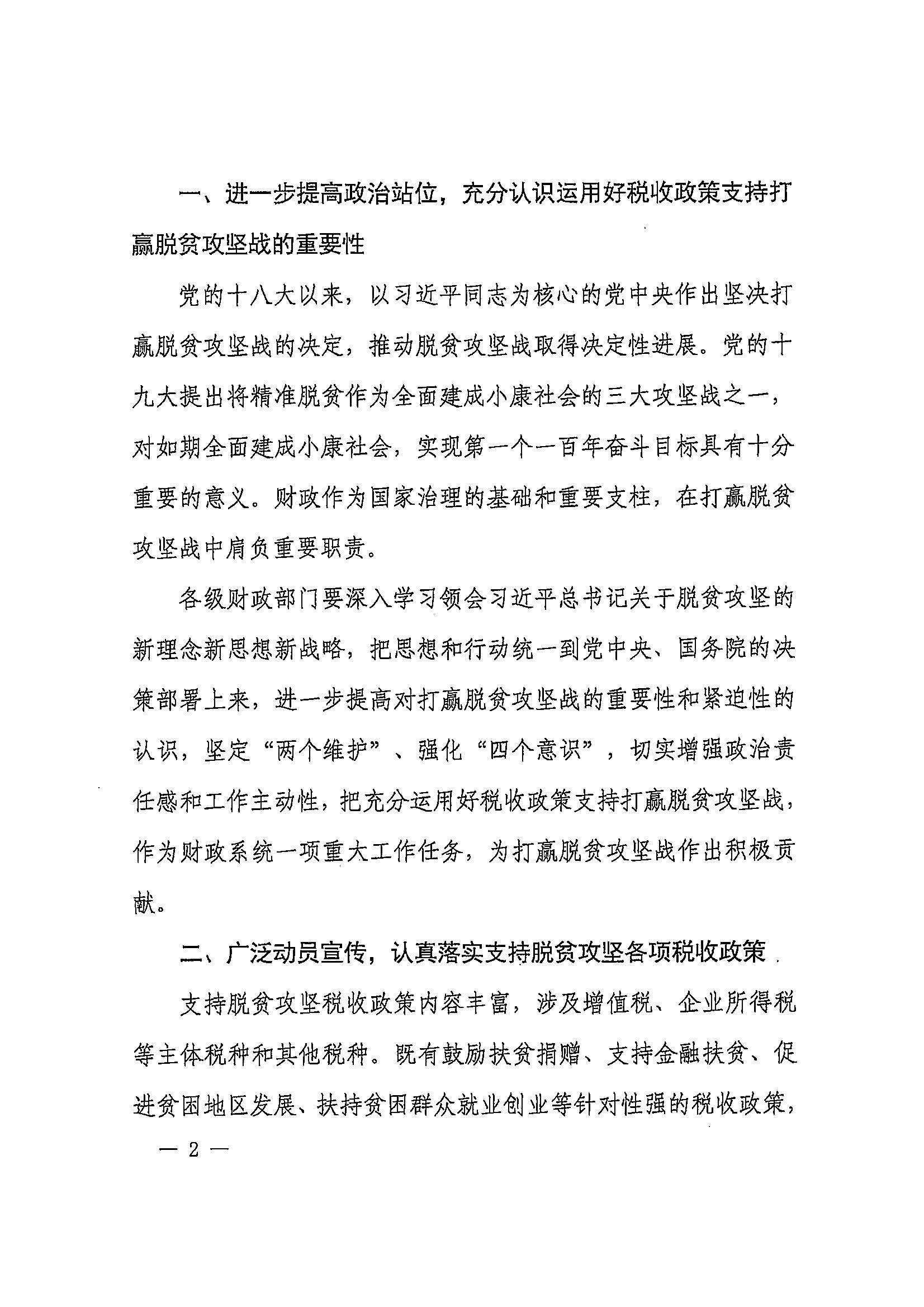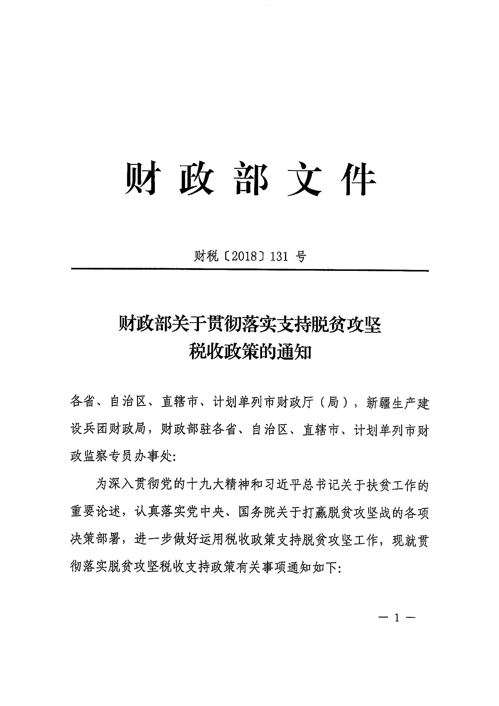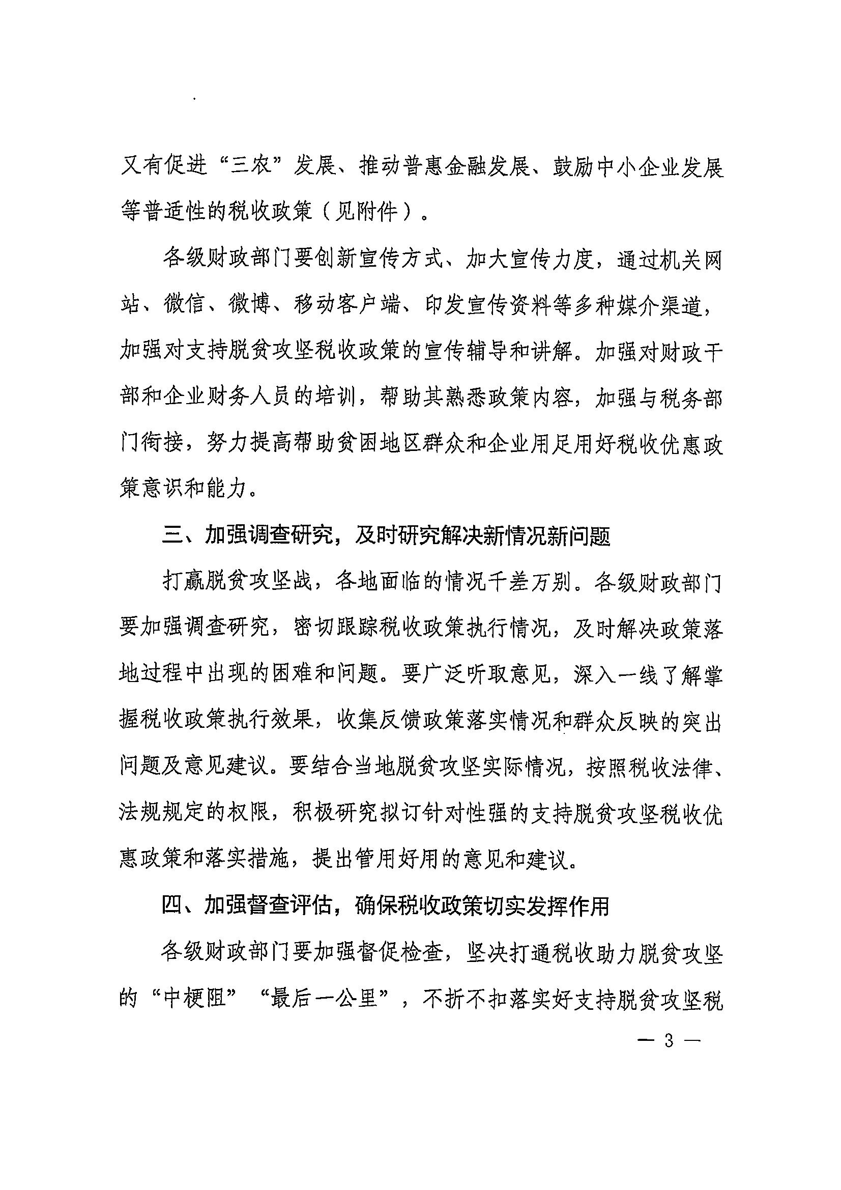 财政部关于贯彻落实支持脱贫攻坚税收政策的通知
