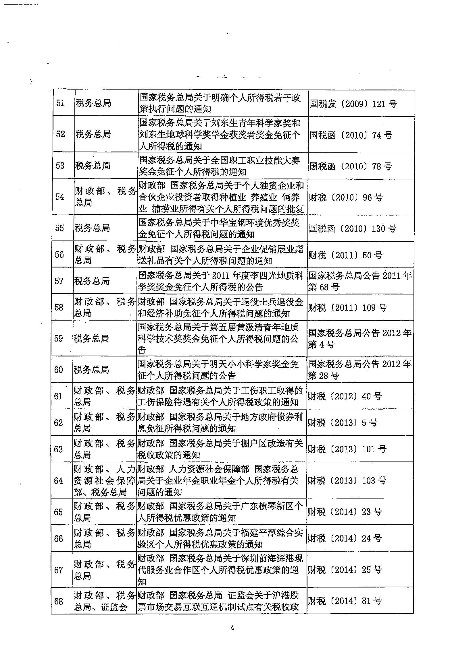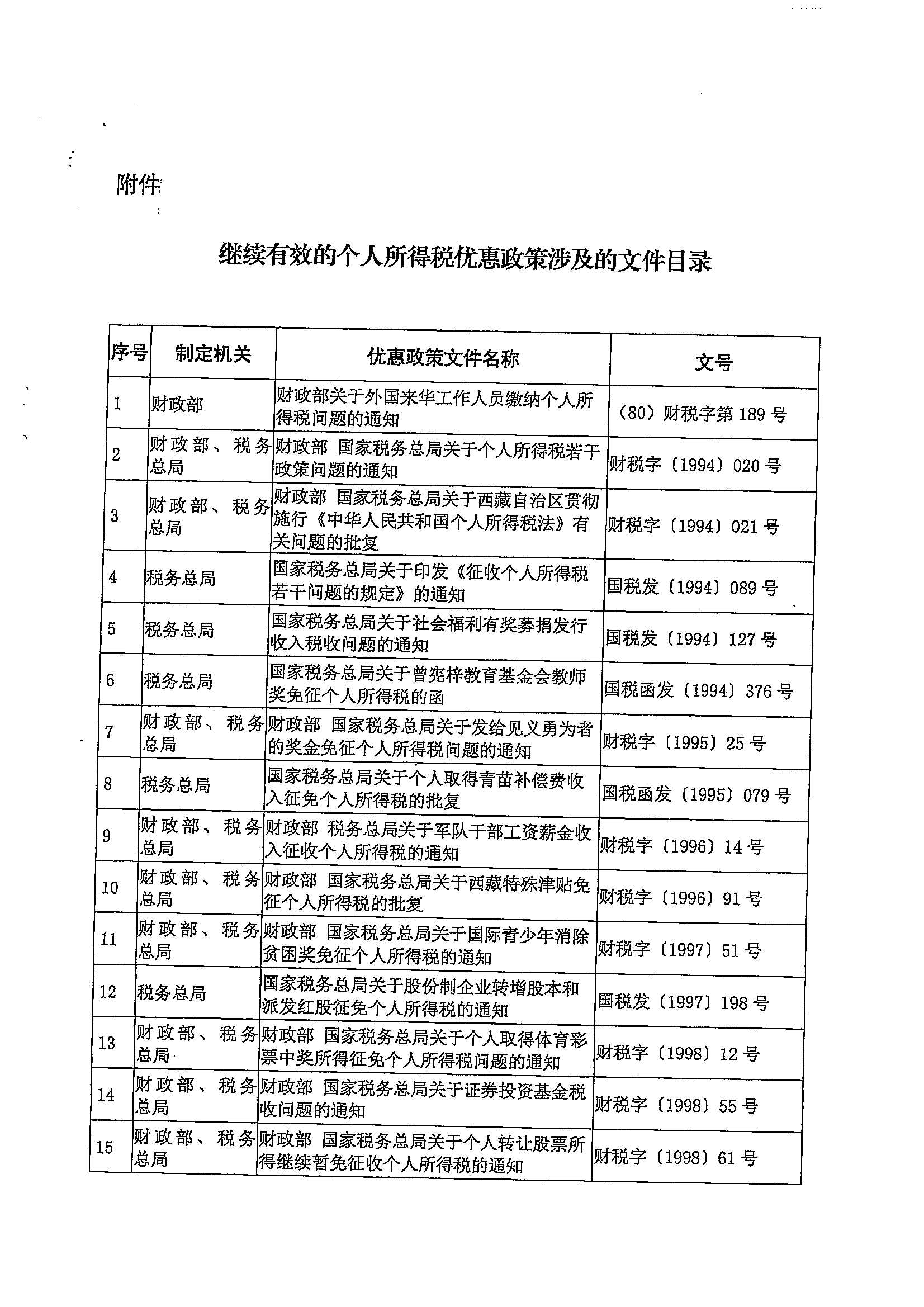 财政部 税务总局关于继续有效的个人所得税优惠政策目录的公告