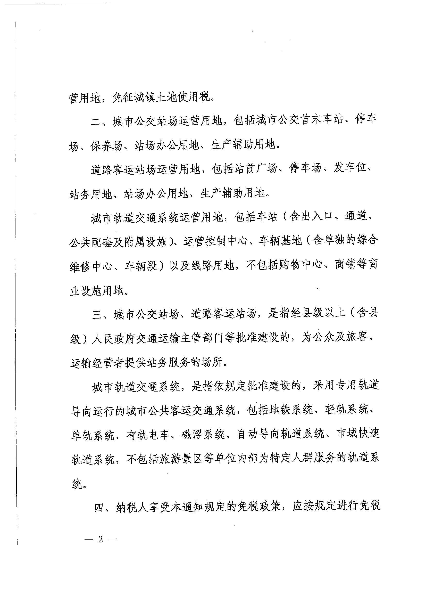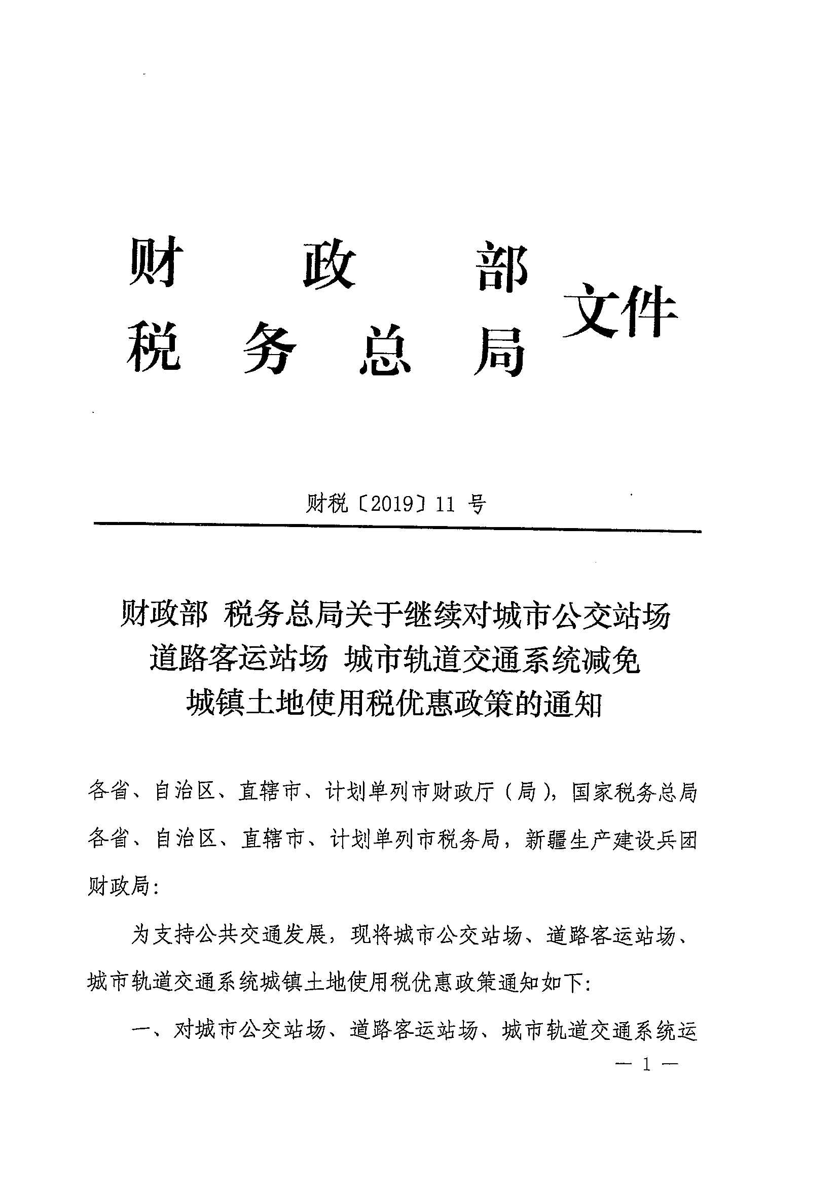 财政部 税务总局关于继续对城市公交站场道路客运站场 城市轨道交通系统减免城镇土地使用税优惠政策的通知