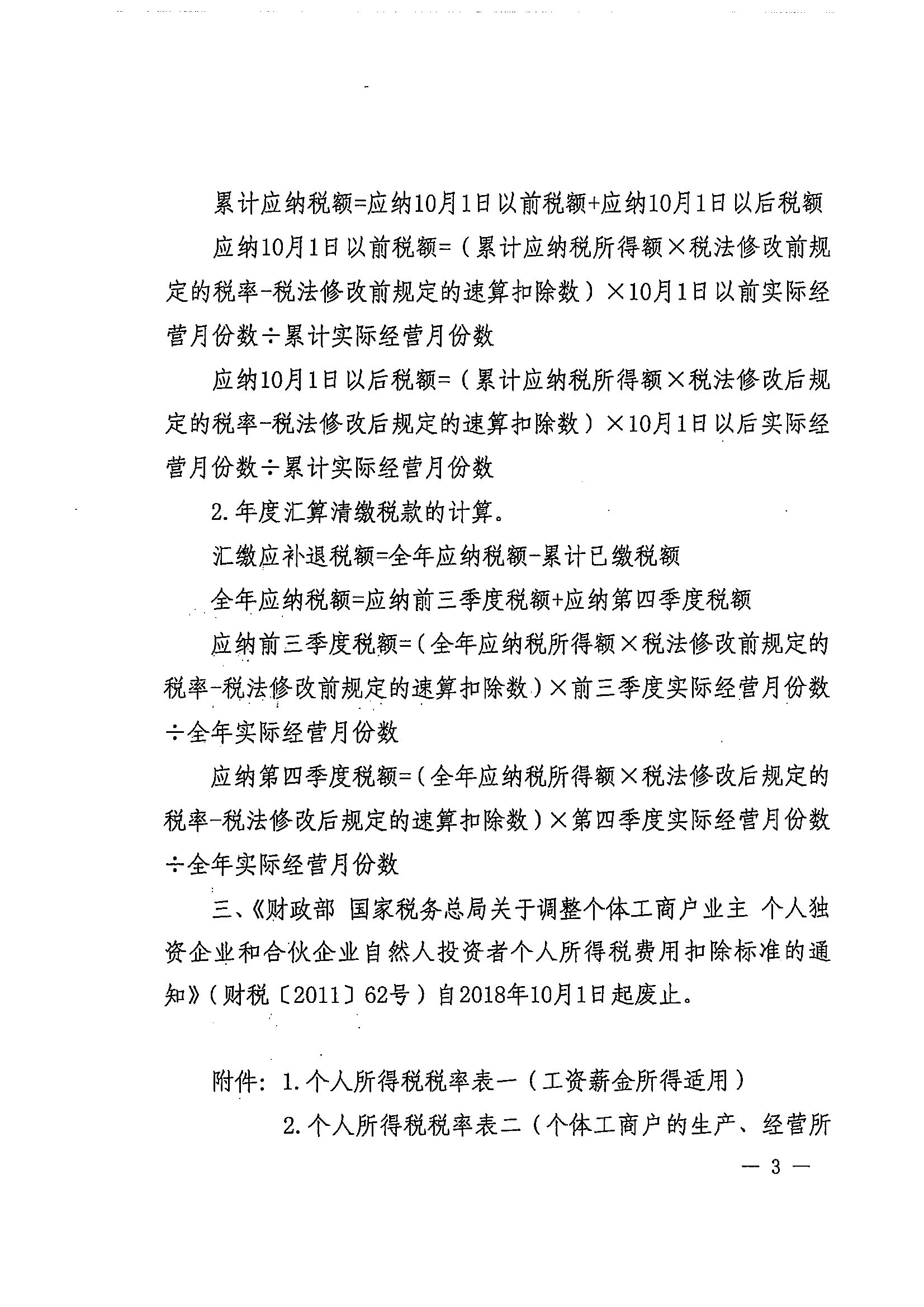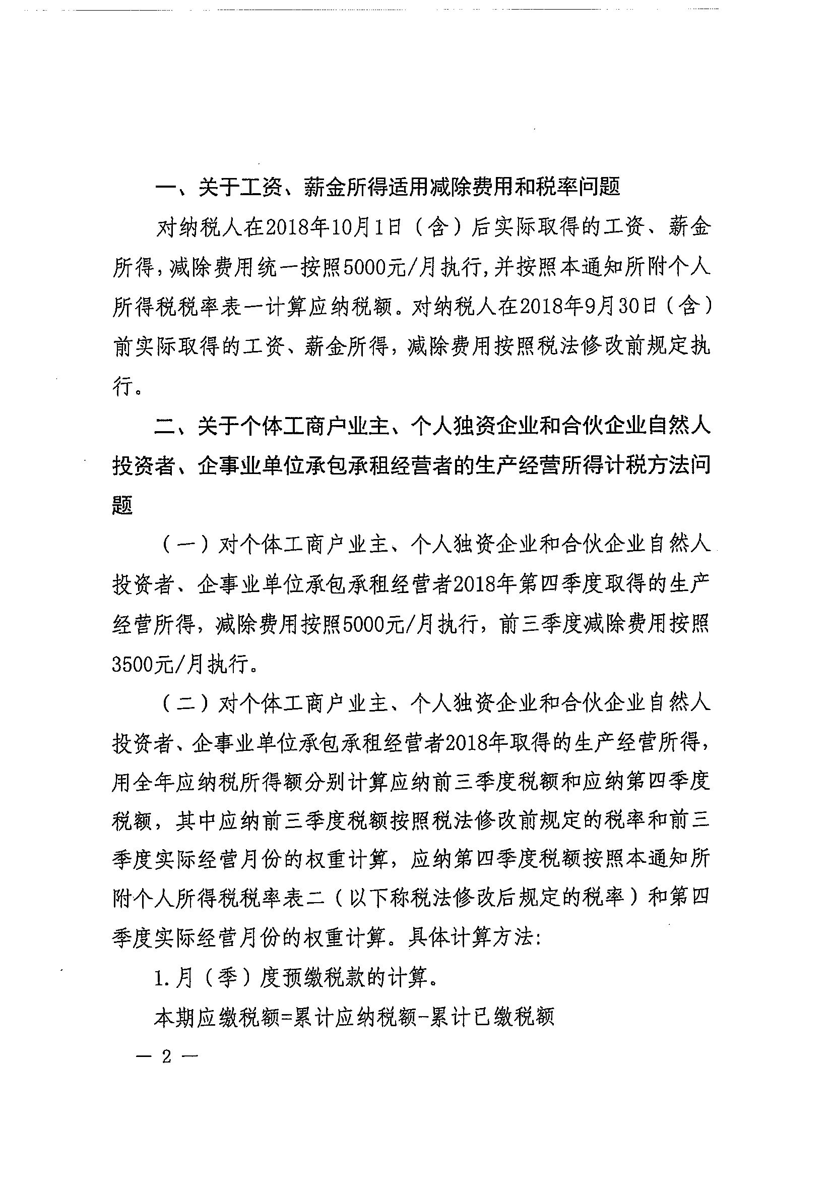 财政部 税务总局关于2018年第四季度个人所得税减除费用和税率适用问题的通知