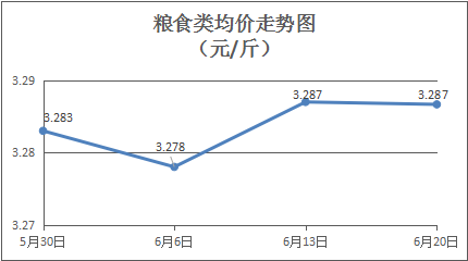 粮食类商品价格总体平稳。本周所监测的6种粮食商品价格(与上周比,下同)均持平,综合零售均价为3.287元/斤。其中:晚籼米、丝苗米、标准粉零售均价分别为每斤3.28元、3.52元、3.12元,环比均持平。