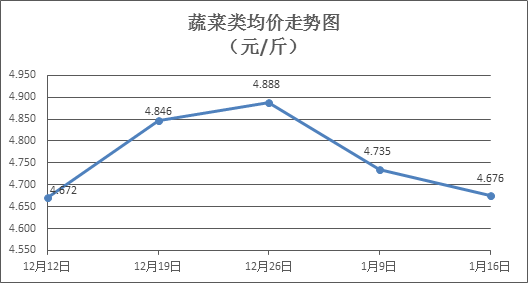 据本市21家农贸市场监测数据显示, 2023年1月10日至1月16日(下同)市场上各类“菜篮子”商品供应充足,所监测的7大类“菜篮子”商品价格3涨3跌1平。其中:粮食类品价格平稳,食用油类、水果类、水产类商品价格有所上涨,肉禽蛋类、蔬菜类商品价格有所下降。