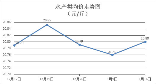 水产类商品价格窄幅盘整。本周所监测的10种水产商品价格波动情况为2涨5跌3平,综合均价为20.80元/斤,环比上涨0.22%。其中:草鱼、鲫鱼、罗非鱼、基围虾零售均价分别为每斤11.54元、14.31元、8.73元、39.48元,环比分别上涨1.45%、持平、上涨0.11%、上涨4.06%。