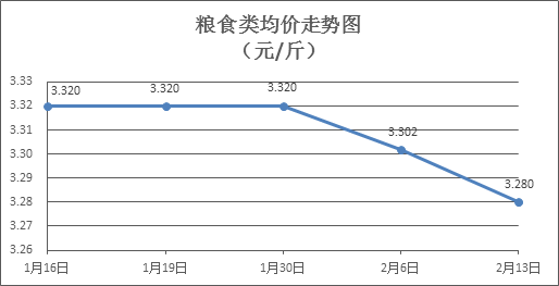 粮食类商品价格继续略降。本周所监测的6种粮食商品价格1平5跌,综合零售均价为3. 280元/斤,环比下降0.66%。其中:晚籼米、丝苗米、富强粉零售均价分别为每斤3.26元、3.42元、3.36元,环比分别为下降1.81%、下降0.87%、下降0.59%。