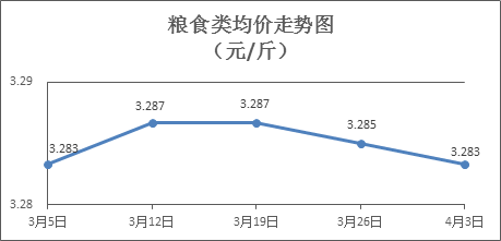 粮食类商品价格基本平稳。本周所监测的6种粮食商品价格浮动情况为1涨1跌4平,综合零售均价为3.283元/斤,环比下降0.05%。其中:珍珠米、油粘米、标准粉零售均价分别为每斤3.09元、3.42元、3.14元,环比分别上涨0.32%、下降0.58%、持平。