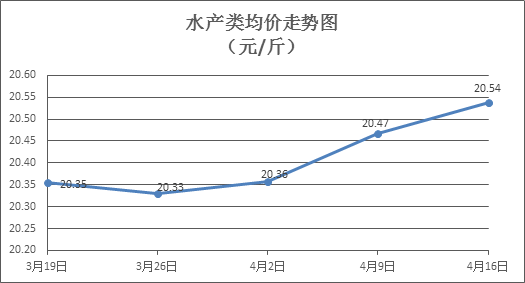 水产类商品价格总体微升。本周所监测的10种水产商品价格波动情况为6涨4跌,综合均价为20.54元/斤,环比上涨0.34%。其中:草鱼、鲫鱼、鳙鱼、罗非鱼、基围虾零售均价分别为每斤11.06元、13.79元、10.20元、8.44元、38.73元,环比分别上涨1.10%、下降0.43%、上涨0.20%、下降0.59%、下降0.18%。