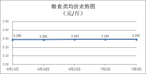 粮食类商品价格基本平稳。上周所监测的6种粮食商品价格环比均持平,综合零售均价为3.293元/斤。其中:丝苗米、油粘米、标准粉零售均价分别为每斤3.46元、3.42元、3.16元,环比均持平。