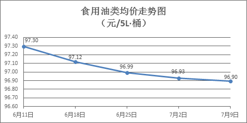 食用油类商品价格微幅下降。上周所监测的9种食用油(5L装)商品价格波动情况为1涨5跌3平,综合零售均价为96.90元/桶,环比下降0.04%。其中:鲁花花生油、金龙鱼调和油零售均价分别为每桶157.05元、71.39元,环比分别下降0.10%、下降0.06%。
