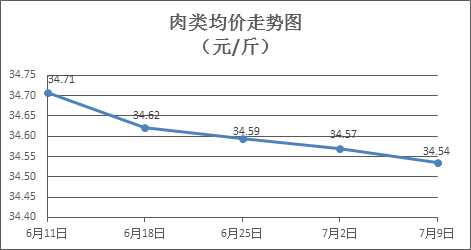 肉类商品价格弱势盘整。上周所监测的8种肉类商品价格波动情况为3涨4跌1平,综合零售均价为34.54元/斤,环比下降0.10%。其中:排骨、精瘦肉、有皮上肉、牛肉、带骨羊肉零售均价分别为每斤28.65元、18.24元、13.94元、54.41元、45.27元,环比分别持平、上涨0.22%、下降0.71%、下降0.27%、下降0.07%。