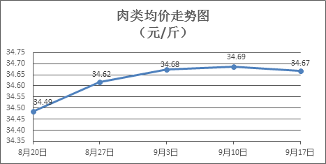 肉类商品价格微幅盘整。上周所监测的8种肉类商品价格波动情况为3涨4跌1平,综合零售均价为34.67元/斤,环比下降0.06%。其中:排骨、精瘦肉、有皮上肉、牛肉、带骨羊肉零售均价分别为每斤29.83元、19.12元、14.46元、53.99元、44.77元,环比分别下降0.13%、上涨0.63%、上涨1.12%、持平、下降0.31%。