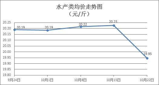 水产类商品价格小幅下降。上周所监测的10种水产商品价格波动情况为2涨8跌,综合均价为19.95元/斤,环比下降1.37%。其中:草鱼、鲢鱼、鲫鱼、罗非鱼、基围虾零售均价分别为每斤11.01元、9.64元、14.15元、8.44元、33.39元,环比分别下降0.81%、下降0.31%、下降0.91%、下降0.24%、下降5.78%。