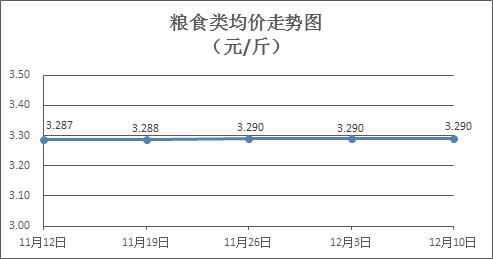 粮食类商品价格保持稳定。上周所监测的6种粮食类商品价格均持平,综合零售均价为3.290元/斤。其中:晚籼米、油粘米、标准粉零售均价分别为每斤3.24元、3.44元、3.15元,环比均持平。