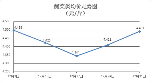 据本市21家农贸市场监测数据显示,上周(12月25日至12月31日,下同)市场上各类“菜篮子”商品供应充足,所监测的7大类“菜篮子”商品价格3涨2跌2平。其中:粮油类商品价格基本平稳,肉类、水果类商品价格窄幅盘降,禽蛋类、蔬菜类、水产类商品价格总体略涨。元旦节假日过后,市场消费需求降温,预计近期家禽蔬果等商品价格有所回落。