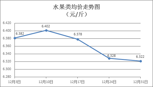 水果类商品价格总体略降。上周所监测的6种水果商品价格波动情况为3涨3跌,综合零售均价为6.322元/斤,环比下降0.11%。其中橙子、葡萄、梨零售均价分别为每斤5.61元、13.13元、5.95元,环比分别下降1.92%、上涨1.08%、下降0.50%。