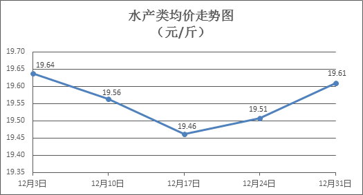 水产类商品价格略有上升。上周所监测的10种水产商品价格波动情况为7涨2跌1平,综合均价为19.61元/斤,环比上涨0.52%。其中:草鱼、鲫鱼、罗非鱼、基围虾零售均价分别为每斤10.98元、14.09元、8.52元、32.59元,环比分别上涨0.18%、上涨0.21%、上涨0.12%、上涨0.06%。