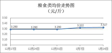粮食类商品价格稳中有涨。上周所监测的6种粮食类商品价格波动情况为3涨3平,综合零售均价为3.327元/斤,环比上涨0.15%。其中:晚籼米、油粘米、标准粉零售均价分别为每斤3.29元、3.47元、3.19元,环比分别上涨0.30%、持平、上涨0.31%。