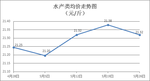 水产类商品价格窄幅盘整。所监测的10种水产商品价格波动情况为4涨4跌2平,综合均价为每斤21.32元,环比下降0.26%。其中:草鱼、鲫鱼、鲈鱼、基围虾零售均价分别为每斤11.31元、14.29元、19.12元、32.27元,环比分别上涨0.80%、下降0.07%、上涨0.47%、下降1.80%。