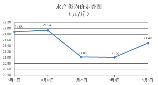 水产类商品价格有所上涨。所监测的9种水产商品价格波动情况为7涨1跌1平,综合均价为每斤21.49元,环比上涨2.27%。其中:草鱼、鲫鱼、罗非鱼、海虾零售均价分别为每斤11.24元、14.21元、8.92元、52.72元,环比分别上涨0.27%、上涨0.07%、上涨0.11%、上涨7.05%。