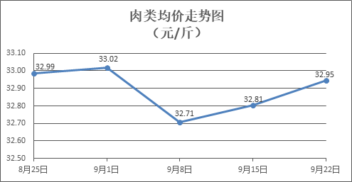 肉类商品价格微幅上涨。所监测的8种肉类商品价格波动情况为7涨1跌,综合零售均价为每斤32.95元,环比上涨0.43%。其中:排骨、精瘦肉、牛肉、带骨羊肉零售均价分别为每斤33.04元、20.62元、45.74元、41.39元,环比分别上涨0.43%、上涨0.59%、上涨0.29%、上涨0.39%。