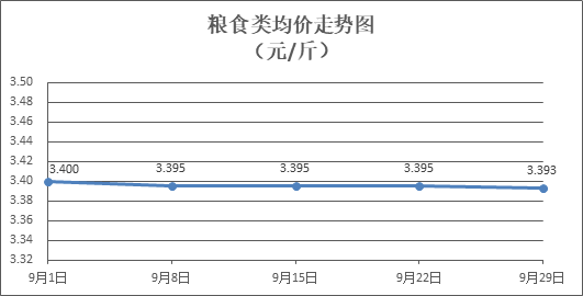 粮食类商品价格基本平稳。所监测的4种粮食类商品价格波动情况为1跌3平,零售均价为每斤3.393元,环比下降0.07%。其中:丝苗米、富强粉零售均价分别为每斤3.58元、3.36元,环比分别持平、下降0.30%。